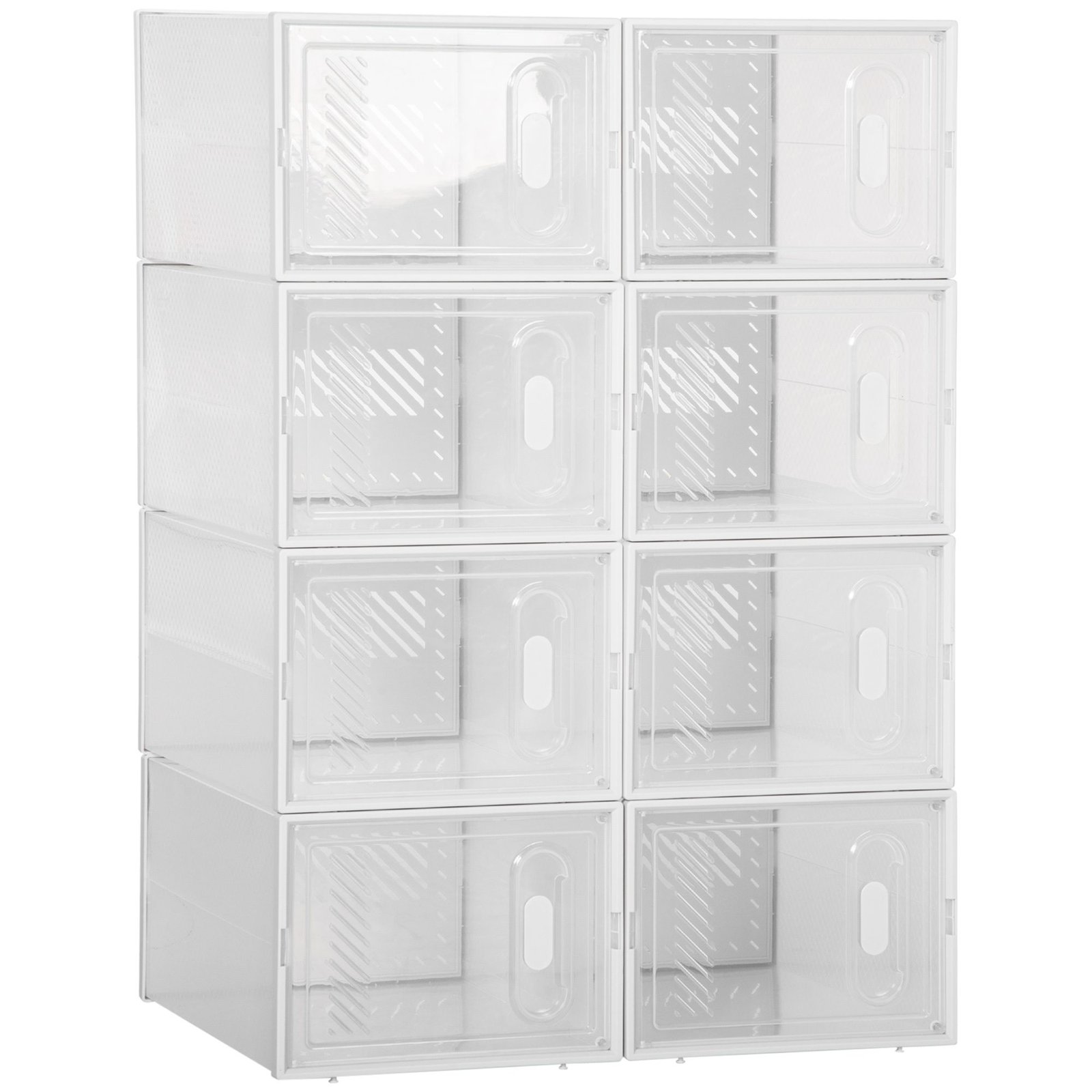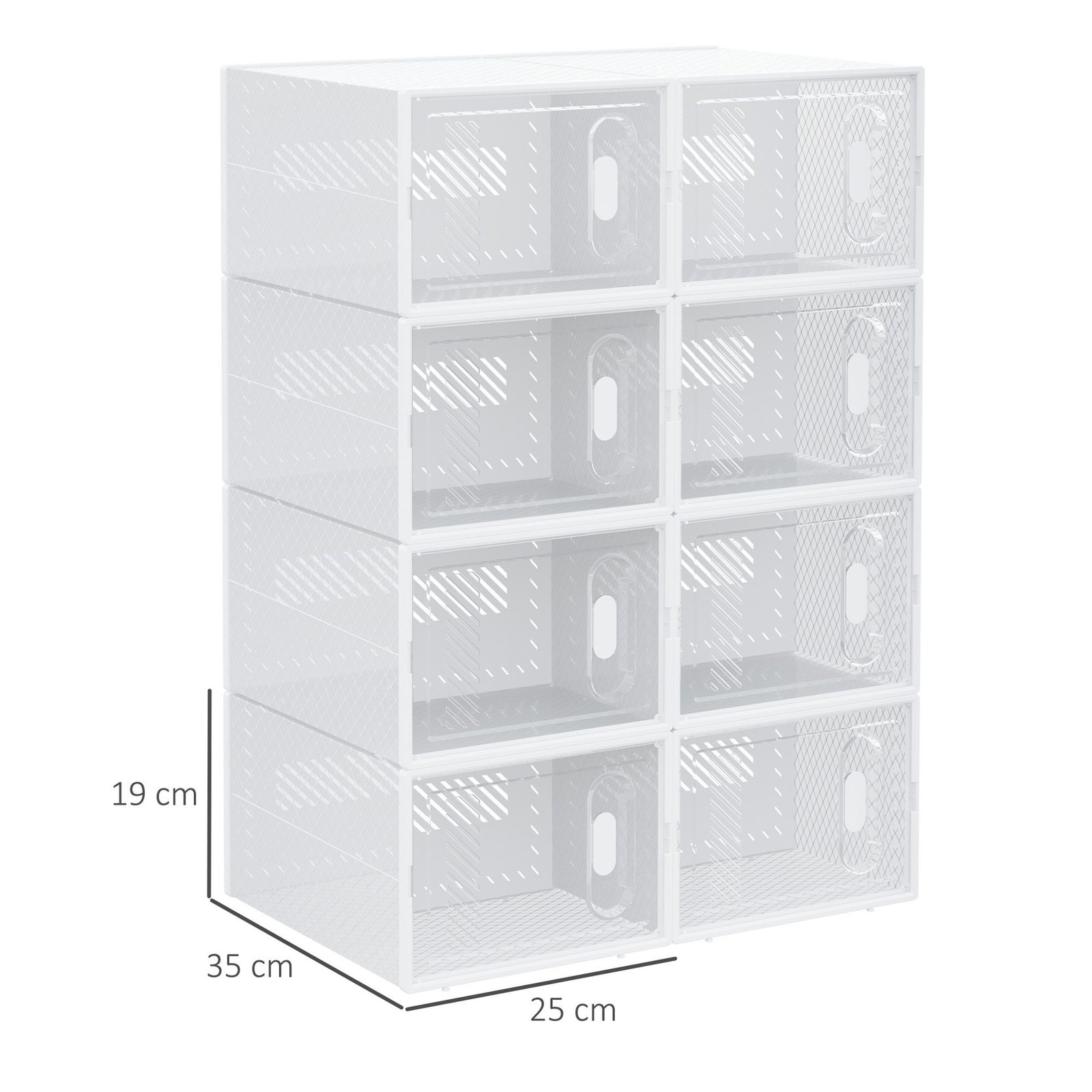 Ši modulinė lentynų sistema yra vienu žingsniu priekyje bet kurios batų lentynos! Sudaryta iš 8 kubinių modulių, ją galima surinkti pagal pageidavimą ir optimaliai pritaikyti prie jūsų interjero. Tvirtas stovas, pagamintas iš plastiko, yra itin patvarus ir turi praktiškas ventiliacijos angas. Skaidrios medžiagos dėka visada matysite savo kolekciją. Žinoma, spintą galite naudoti ir žaislams, knygoms, skalbiniams ir daugeliui kitų daiktų.