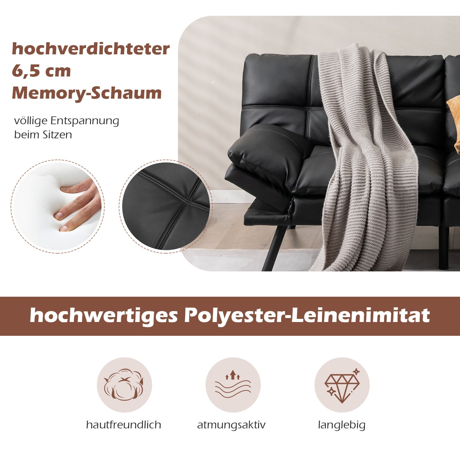 - Medžiaga: Dirbtinė oda, atminties putos, metalas