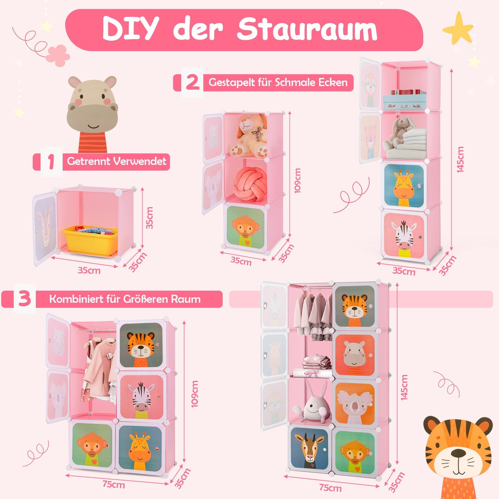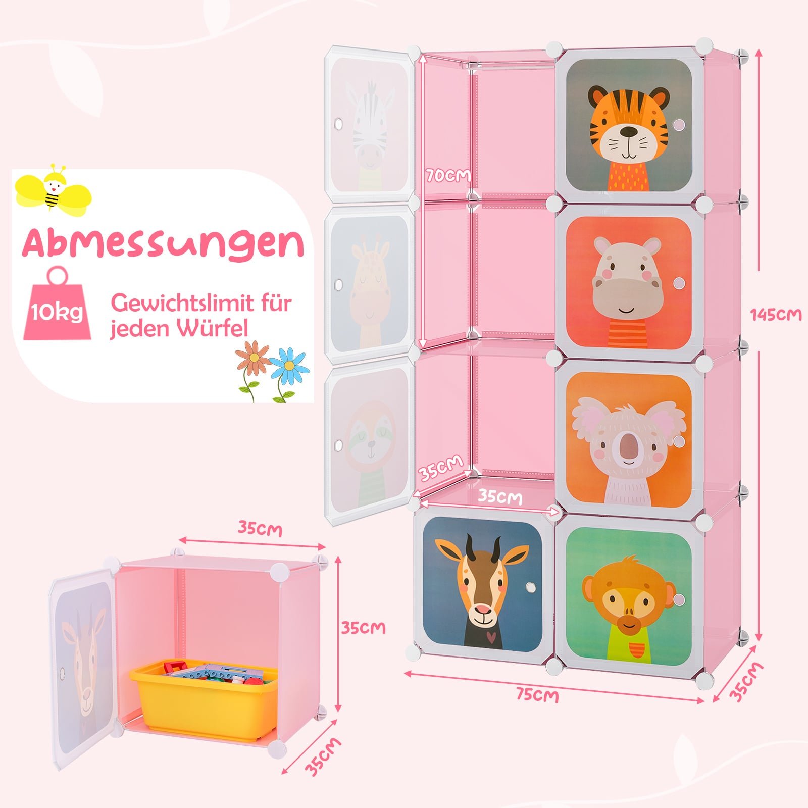 Modulinė vaikiška spinta su 8 skyriais ir kabyklos zona (Rožinė)