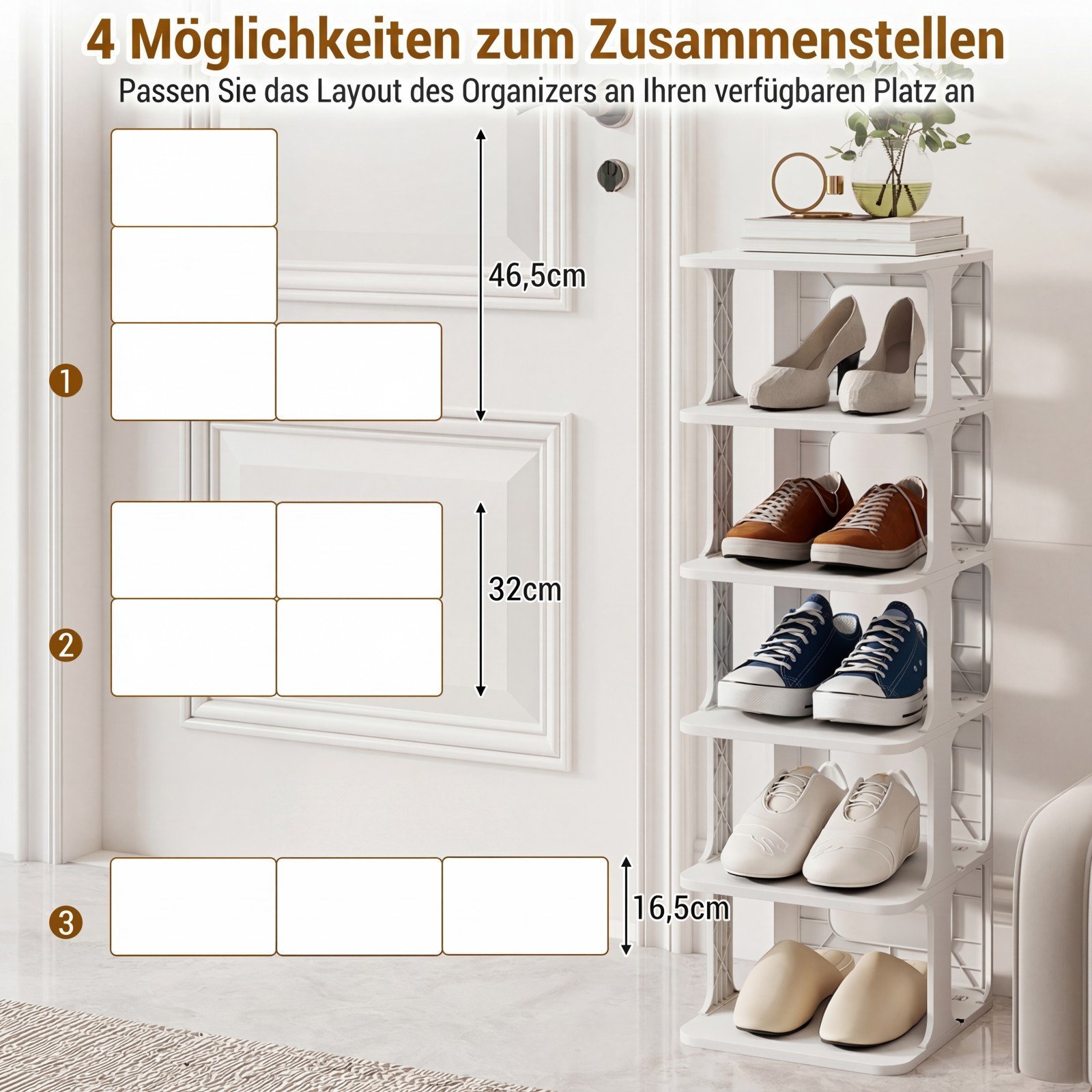 Organizuokite savo batus efektyviai su šiuo pastatomu batų stovu! Jo modulinė konstrukcija leidžia naudoti jį kaip vientisą vertikalų stovą arba sukomponuoti iš kelių atskirų horizontalių sekcijų. Pagamintas iš aukštos kokybės, vandeniui atsparaus PP plastiko, šis batų stelažas yra ilgaamžis, lengvai valomas ir taupo vertingą grindų plotą.