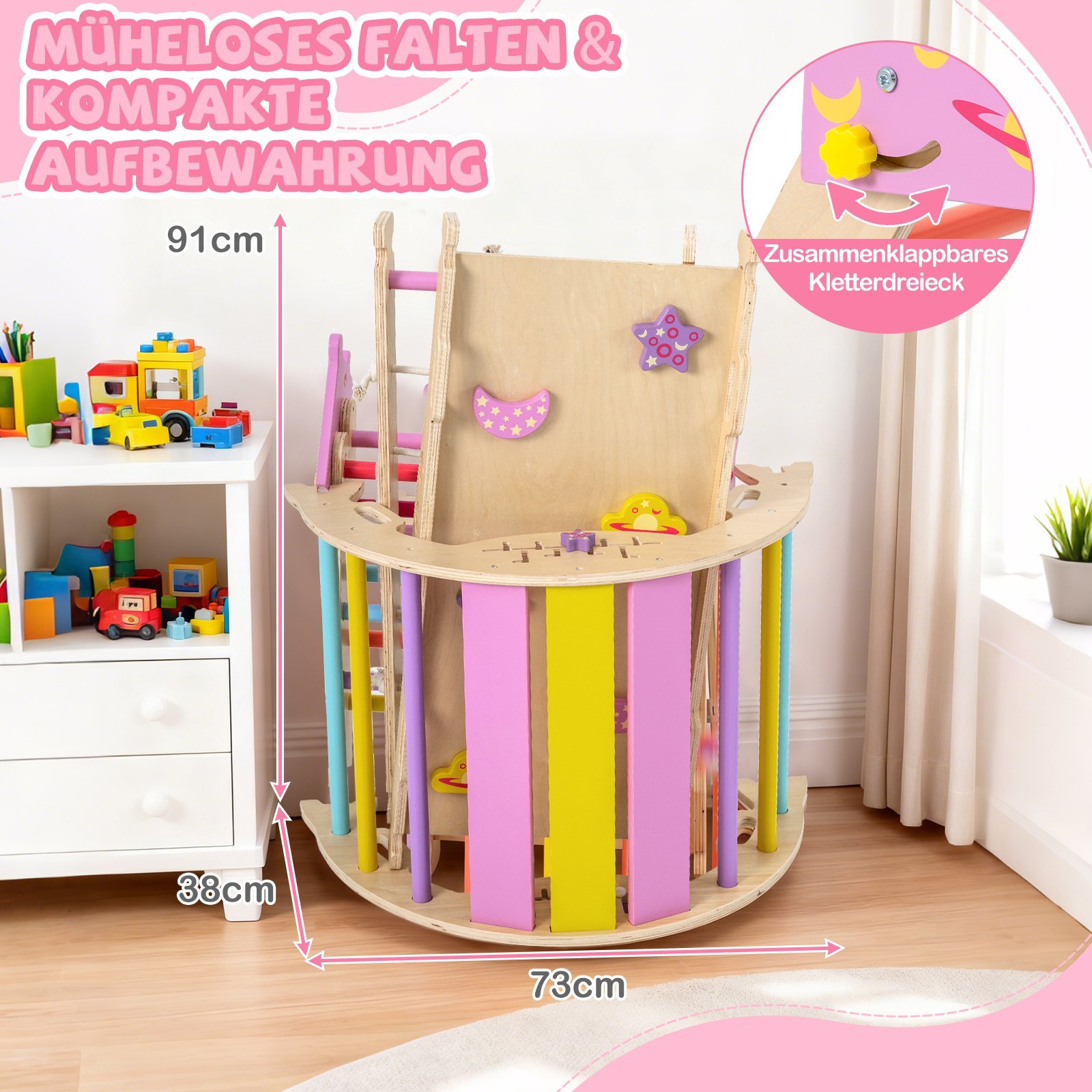 Montessori medinis laipiojimo rinkinys vaikams su sulankstomu trikampiu (Pastelinių spalvų)