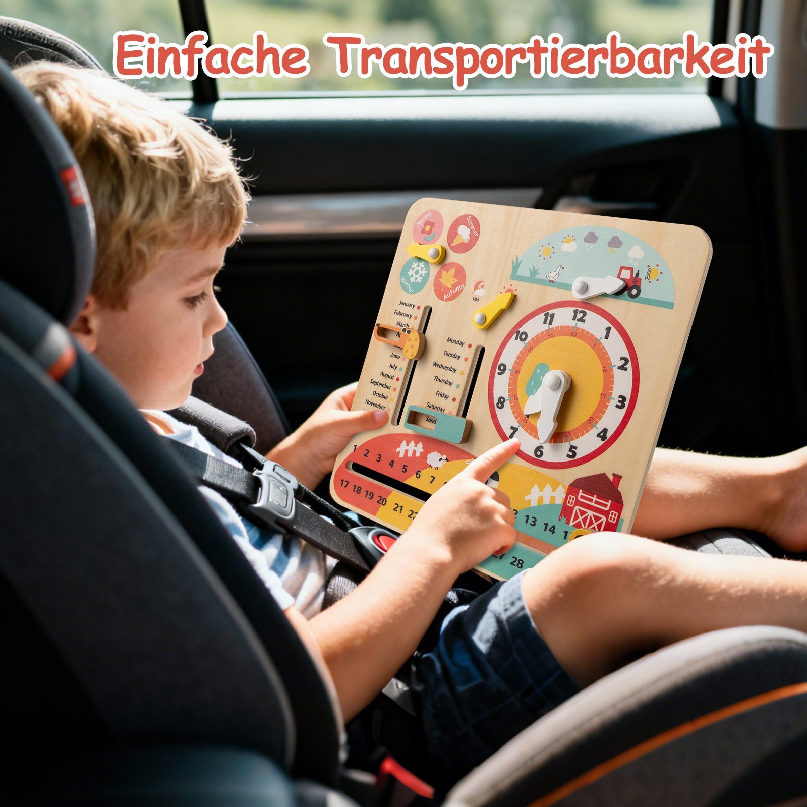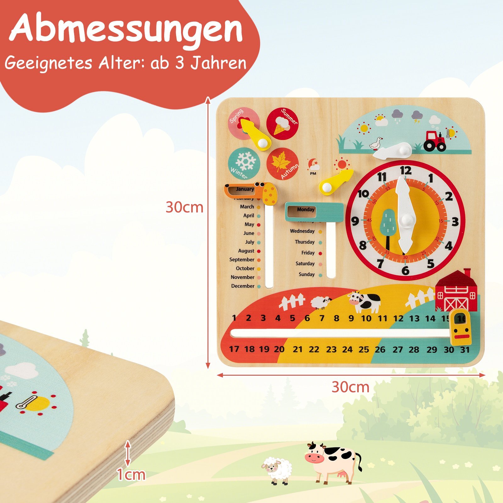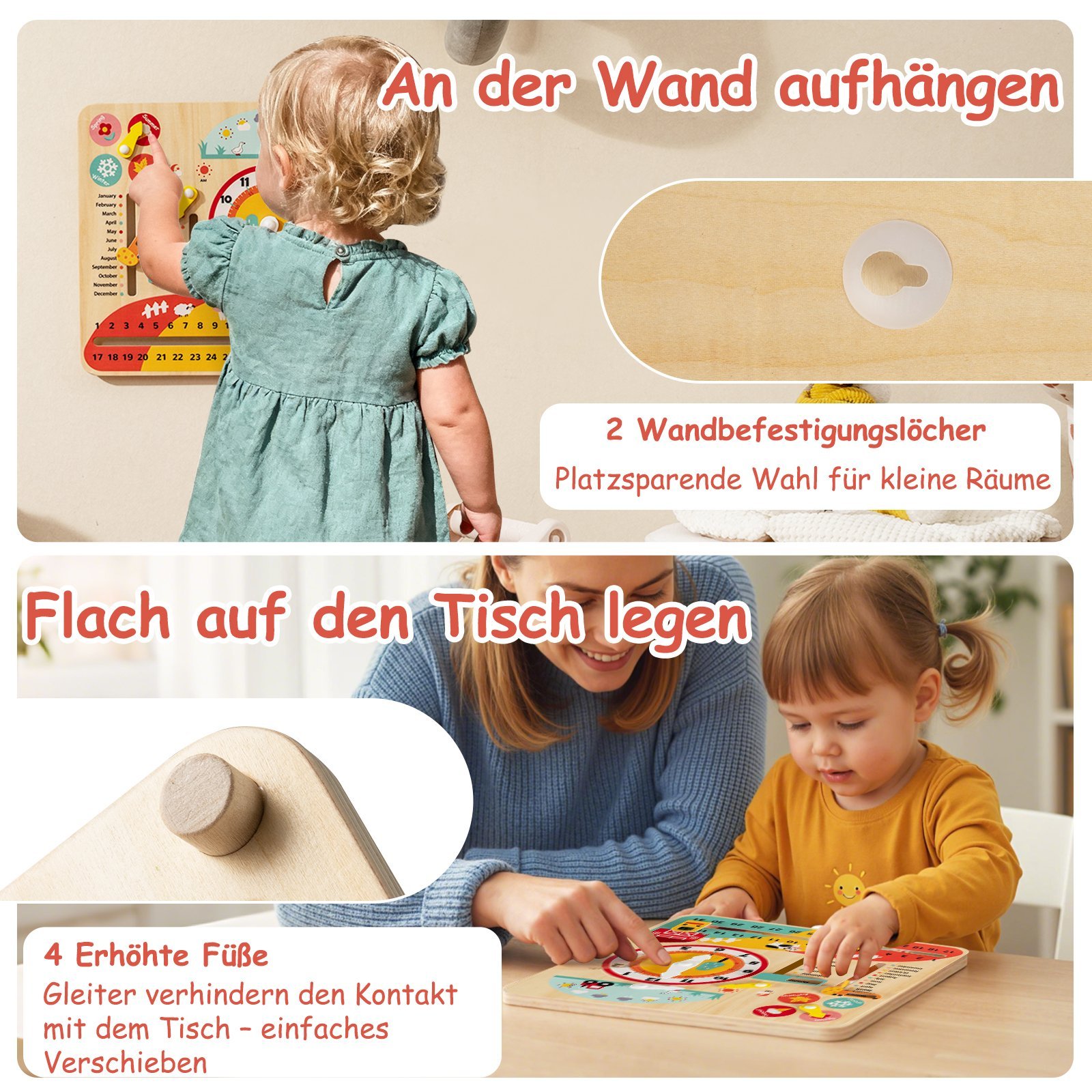 Šis Montessori medinis mokomasis laikrodis-kalendorius skirtas vaikams nuo 3 metų, padedantis jiems suprasti laiko sąvokas, tokias kaip mėnesiai, savaitės, dienos ir datos. Interaktyvios iliustruotos lentelės supažindina mažuosius su metų laikais, orų pokyčiais bei dienos ir nakties ciklu, skatindamos smalsumą ir mokymąsi per žaidimą. Pagamintas iš aukštos kokybės buko medienos, jis užtikrina ilgaamžiškumą ir saugumą. Tai puiki priemonė lavinti ankstyvuosius skaičiavimo įgūdžius ir laiko pojūtį.