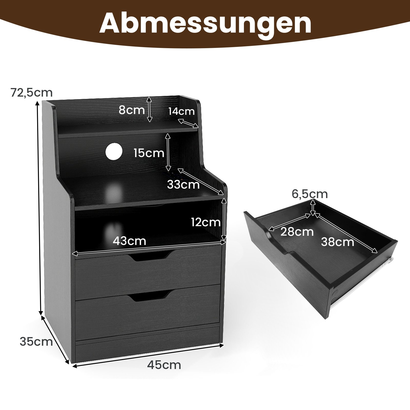 - Erdvi saugykla su 2 stalčiais, atvira lentyna ir viršutine lentyna, skirta įvairiems daiktams tvarkingai sudėti.