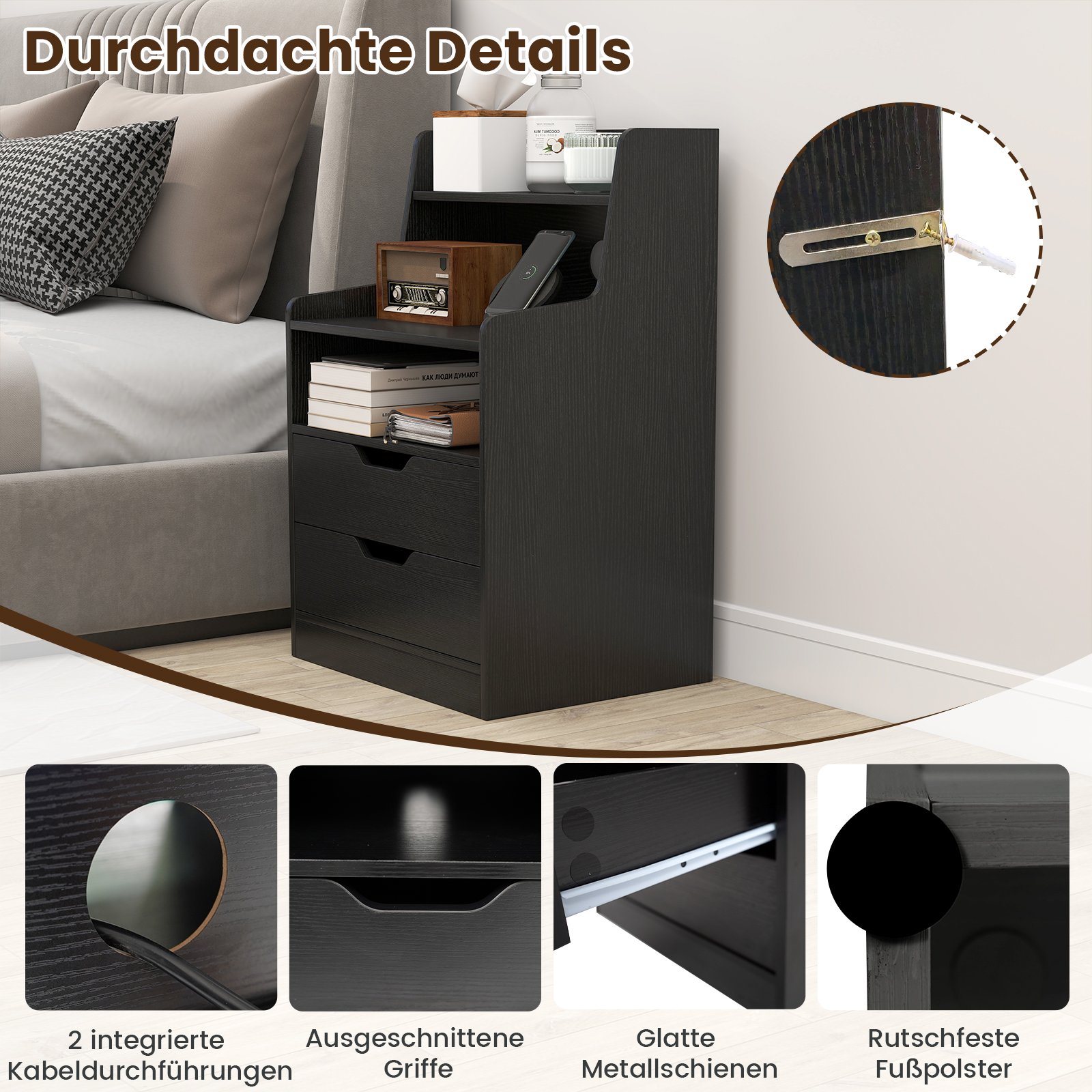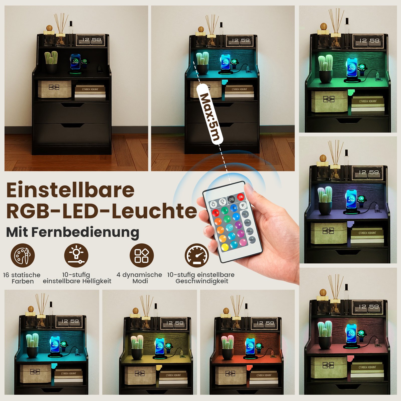 Naktinis staliukas su LED apšvietimu ir įkrovimo stotele (Juoda)