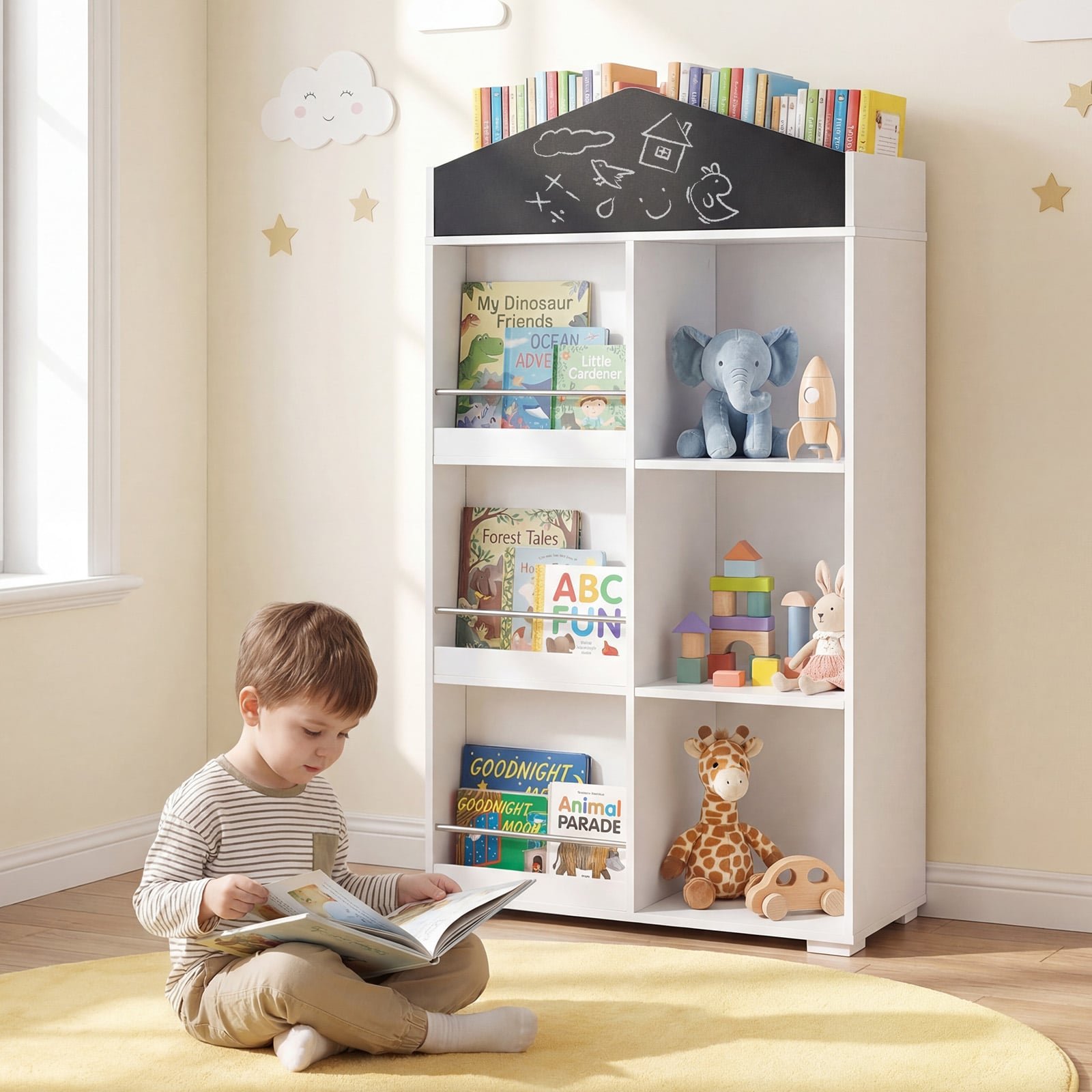 Namelio formos vaikiška knygų lentyna su kreidine rašymo lenta (Balta)