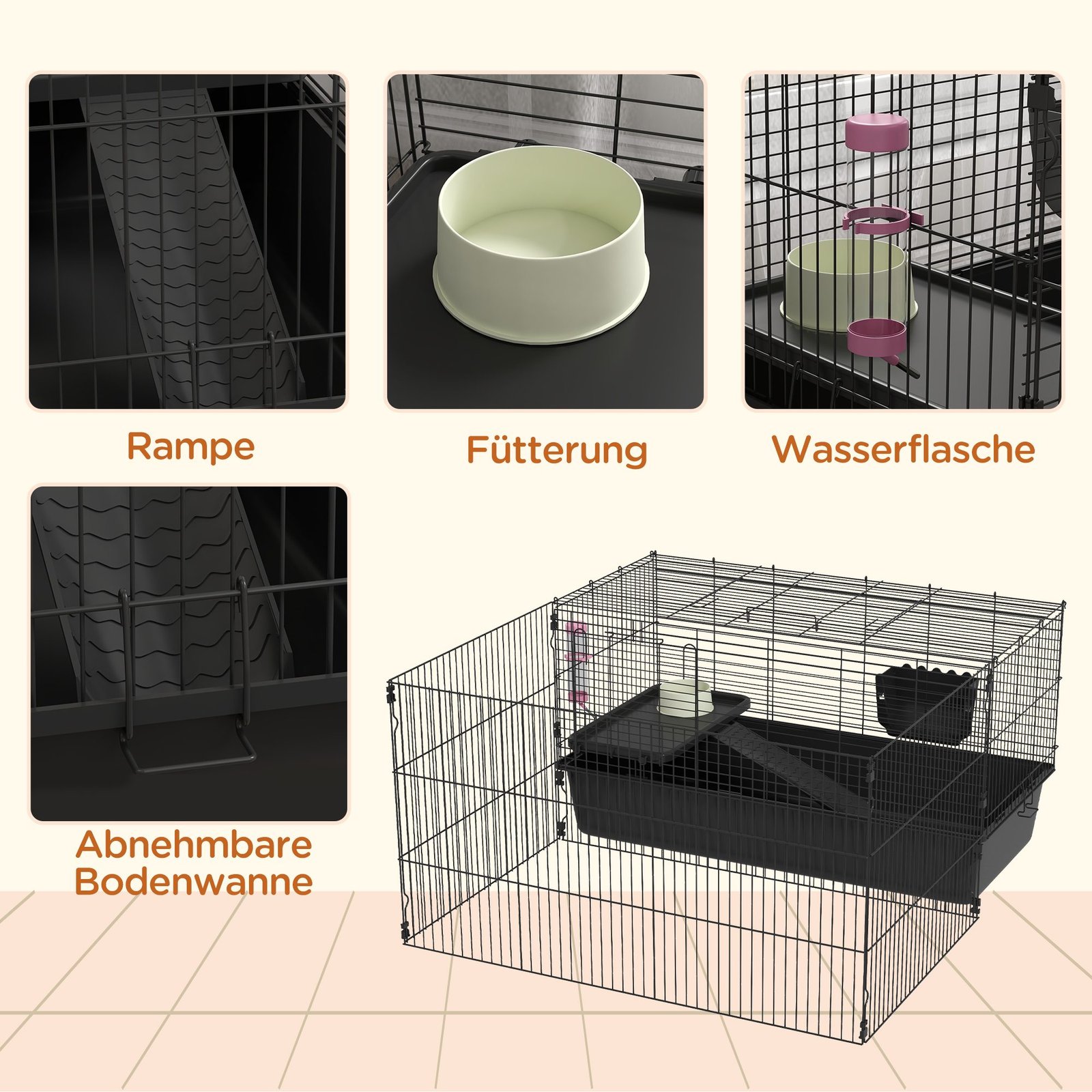 Atraskite tobulus namus mažiems gyvūnėliams, jūrų kiaulytėms ir kitiems su gyvūnų narveliu. Pritaikomumo ir rūpestingumo derinys atsispindi nuimamame aptvaro plote. Šis gyvūnų narvelis komplektuojamas su priedais, tokiais kaip ėdžios, gertuvė ir dubenėlis maistui. Pagamintas iš tvirto plieno, jis užtikrina ilgalaikį saugumą. Optimaliai išnaudokite savo erdvę, kartu užtikrindami savo gyvūnų gerovę.