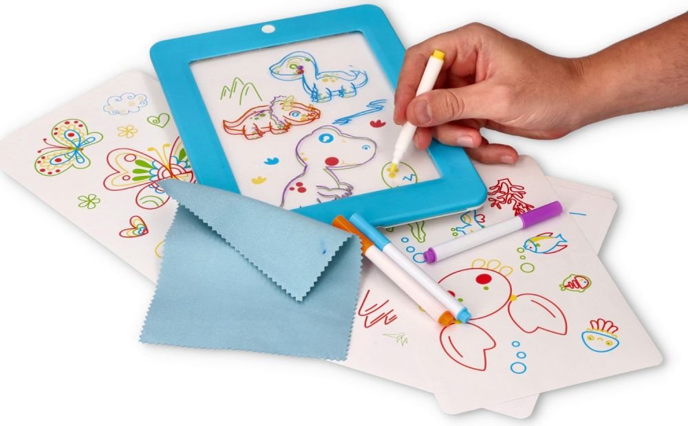Lenta turi 2 siurbtukus, kurie užtikrina jos stabilumą intensyvaus piešimo metu, taip pat integruotą atramą, kuri leidžia pakelti lentą keliais centimetrais ir piešti patogiu kampu.