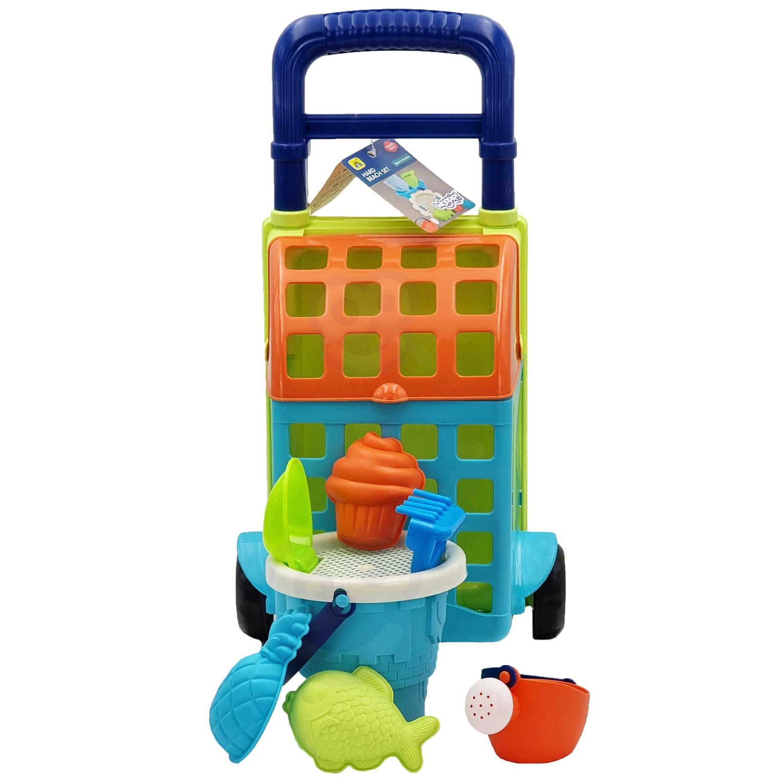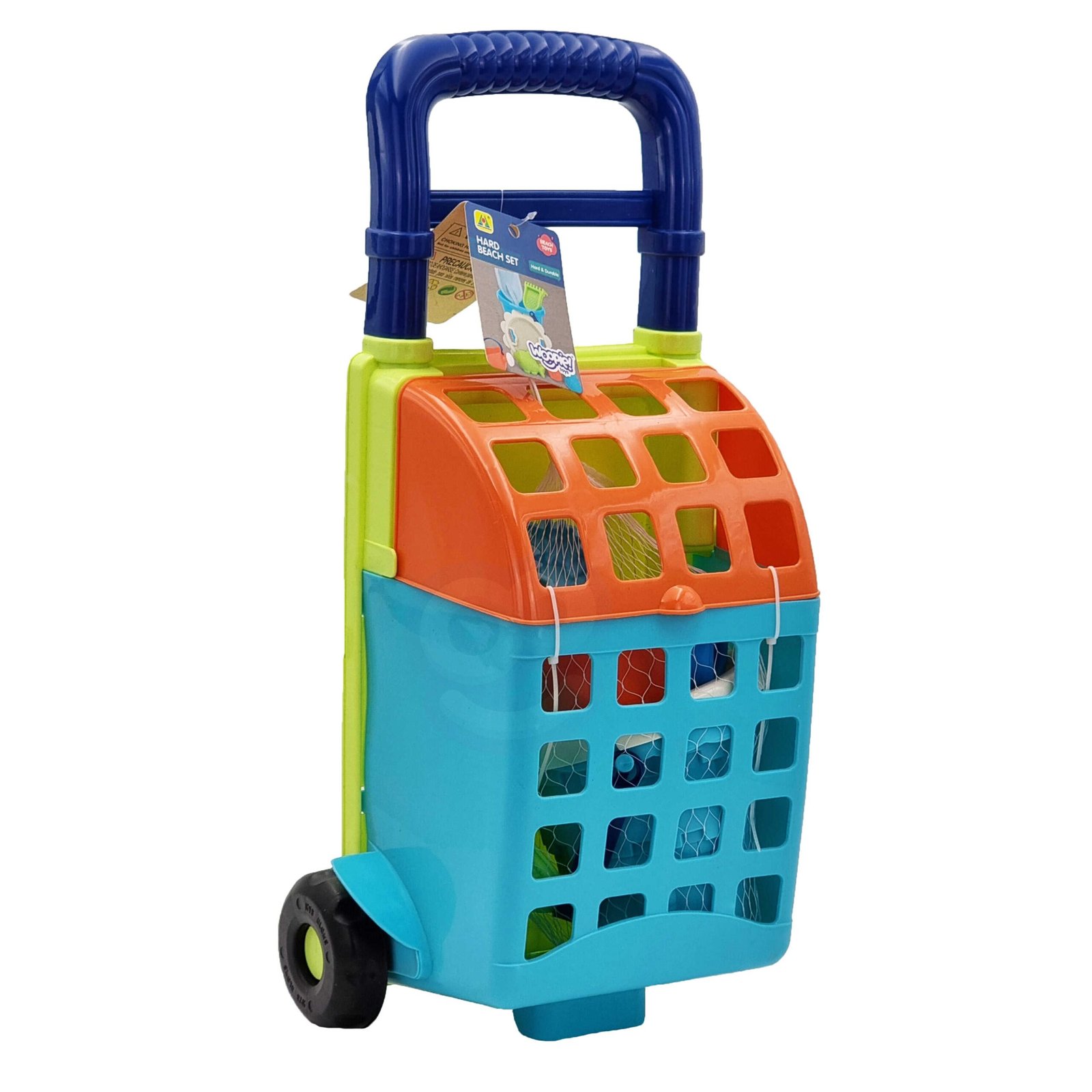 WOOPIE smėlio žaislų rinkinys su vežimėliu yra puikus pasirinkimas aktyviems žaidimams smėliadėžėje, paplūdimyje ar sode. Šį 9 dalių rinkinį sudaro viskas, ko reikia linksmybėms: vežimėlis, kibirėlis, sietelis, laistytuvas, 3 smėlio formelės, kastuvėlis ir grėbliukas. Rinkinys išsiskiria ryškiu neoniniu dizainu, patrauksiančiu kiekvieno vaiko dėmesį. Kibirėlis ir laistytuvas turi patogias rankenas, todėl juos lengva nešiotis ir jais patogu naudotis.