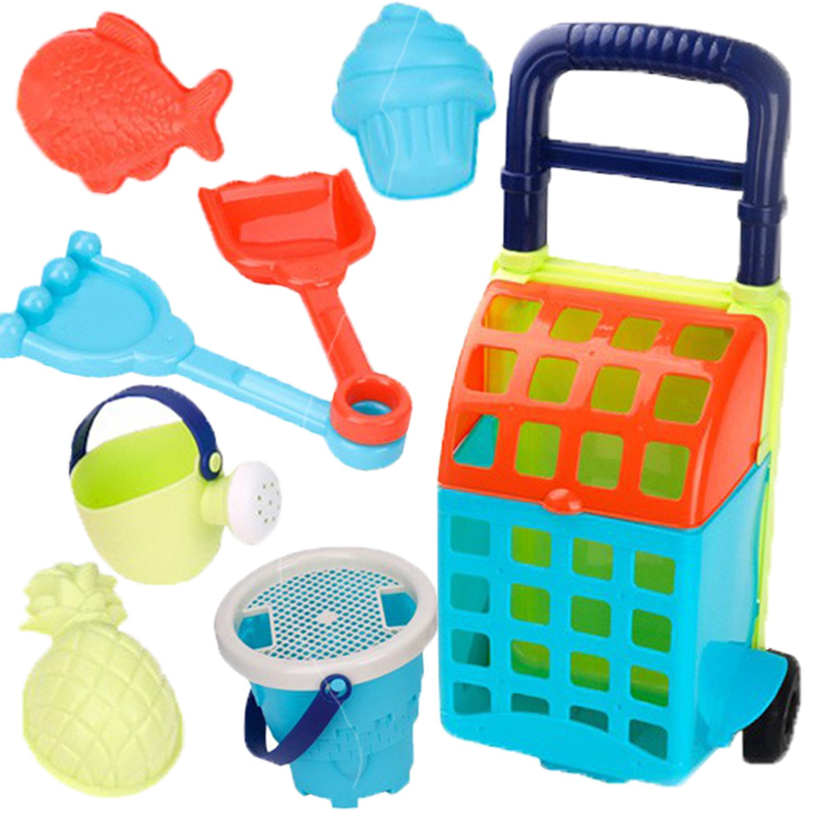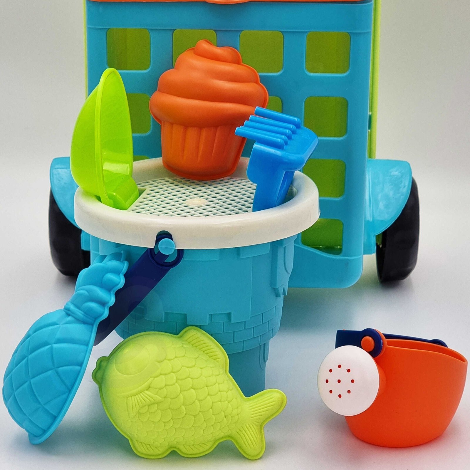 Neoninis smėlio žaislų rinkinys su vežimėliu, 9 dalių