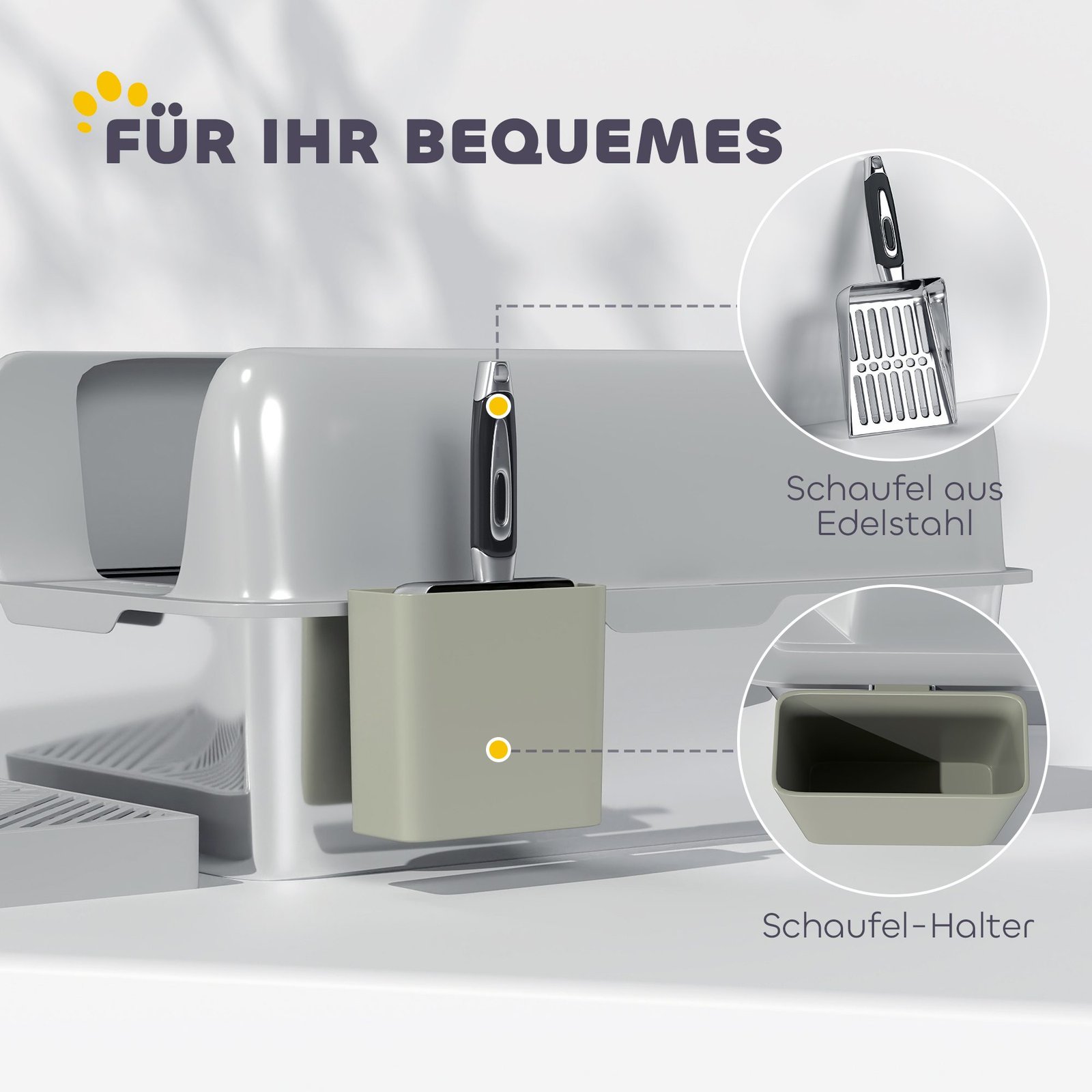 Išbandykite stilingą nerūdijančio plieno kačių kraiko dėžę – puikų funkcionalumo ir dizaino derinį! Su 13,8 cm aukščio sienelėmis, kurios apsaugo nuo teršalų, ir tvirtu nerūdijančio plieno padėklu, kuris paverčia valymą lengvu darbu. Inovatyvi dviguba smėlio sistemos danga sumažina smėlingus pėdsakus. Komplekte yra praktiškas semtuvėlis ir laikymo dėžutė.