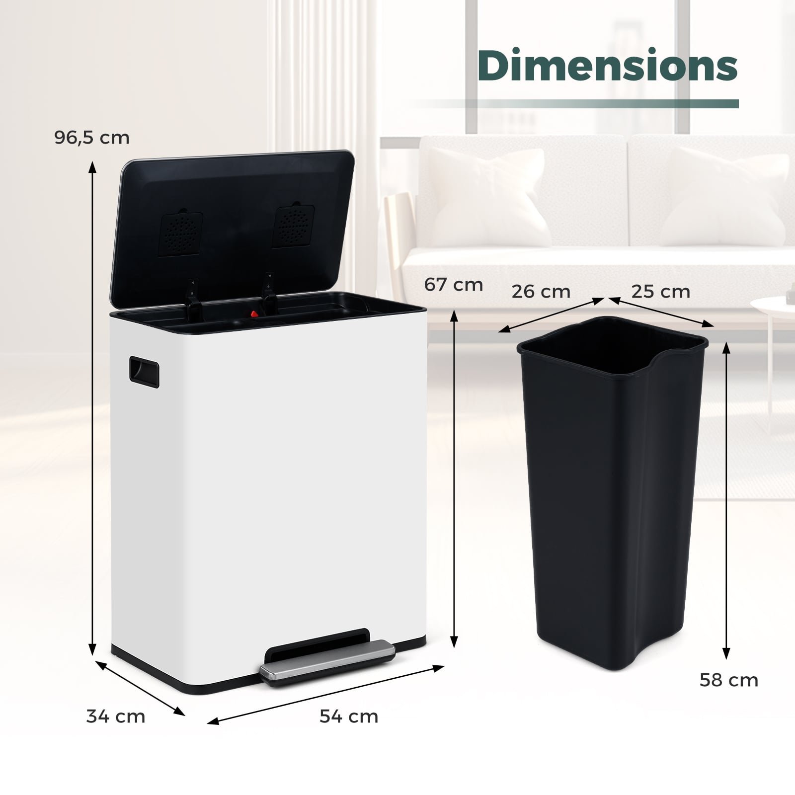Nerūdijančio plieno šiukšliadėžė su pedalu ir atliekų rūšiavimo funkcija 60L (Balta)
