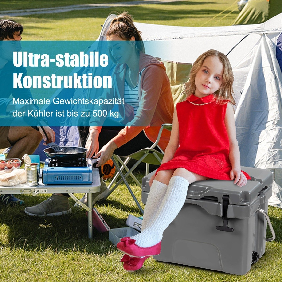 Nešiojama 15 l talpos aušinimo dėžė su puodelio laikikliais (Pilka)