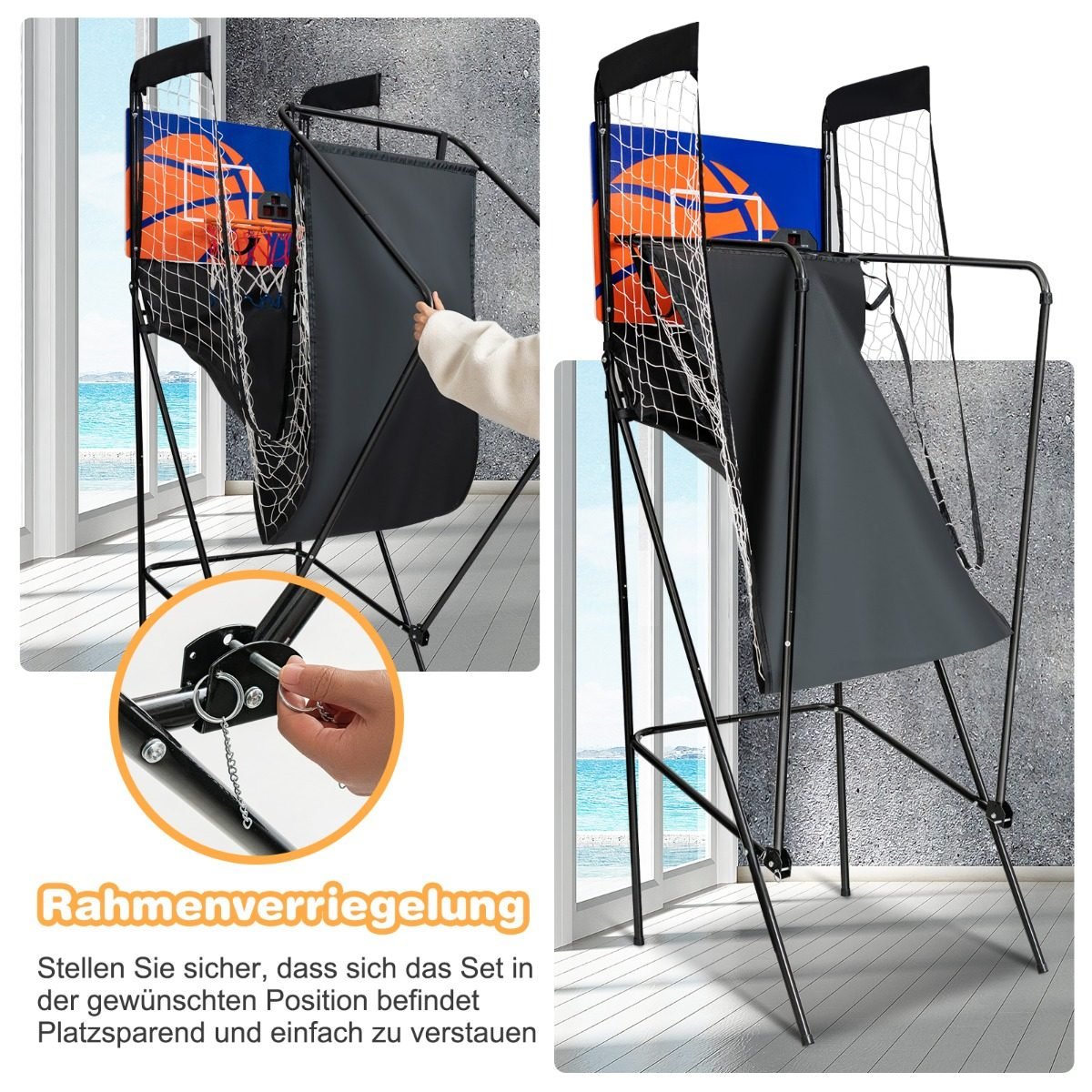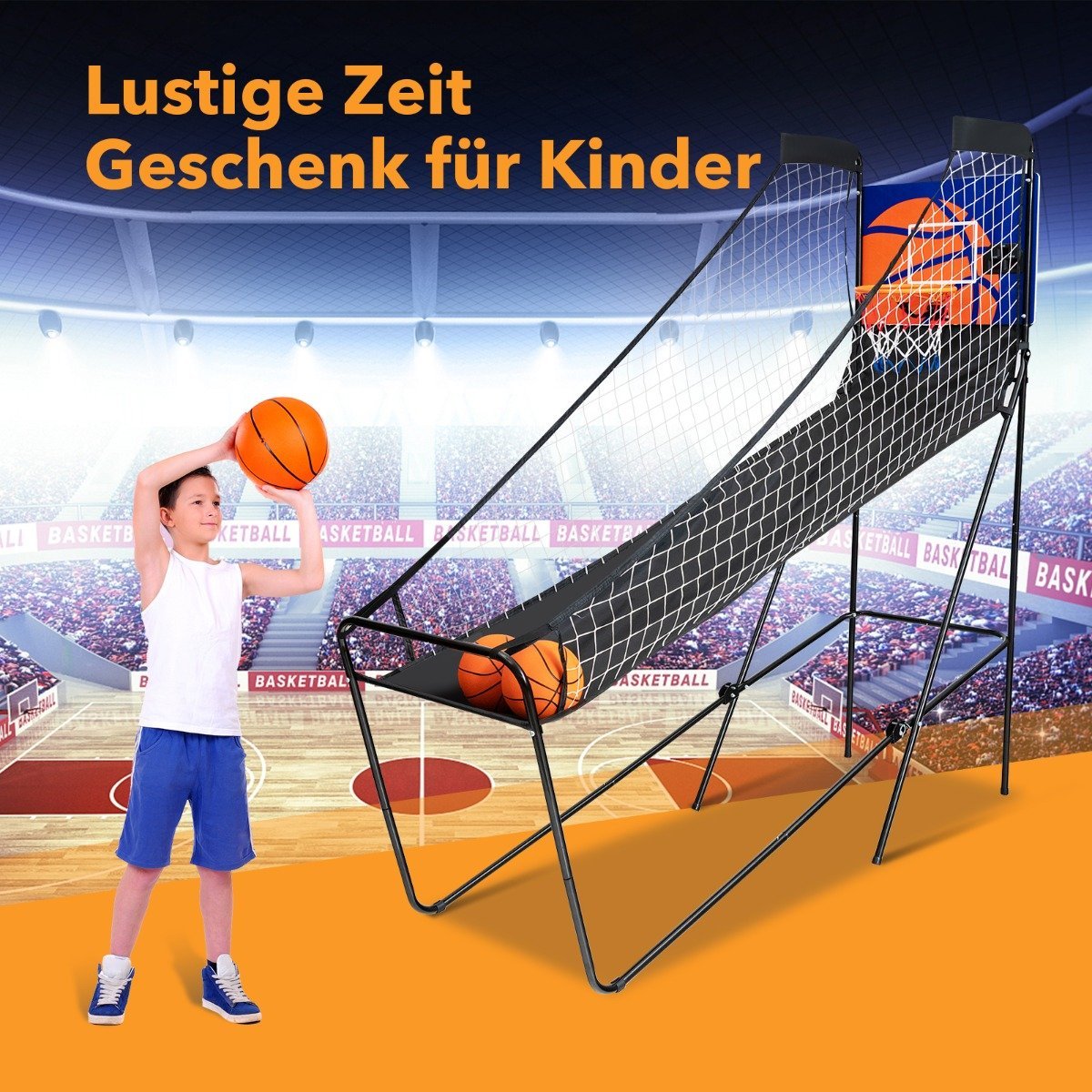 Pasinerkite į žaidimų ir pramogų pasaulį su mūsų nešiojama arkadine krepšinio aikštele! Ji suteiks daugybę džiaugsmo ir pramogų tiek vaikams, tiek suaugusiems, skatinant aktyvų laisvalaikį bei gerinant rankų ir akių koordinaciją.