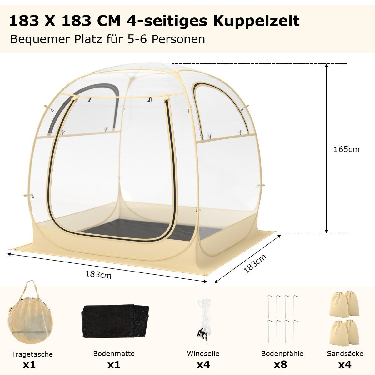 - Bendri matmenys: 183 x 183 x 165 cm (Ilgis x Plotis x Aukštis)