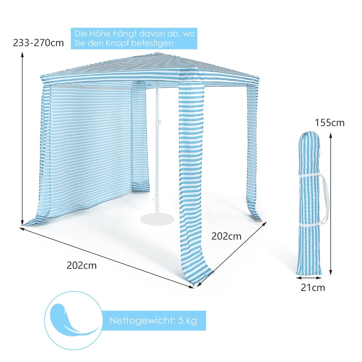 Nešiojama paplūdimio palapinė su stogu ir krepšiu (Mėlyna ir balta)