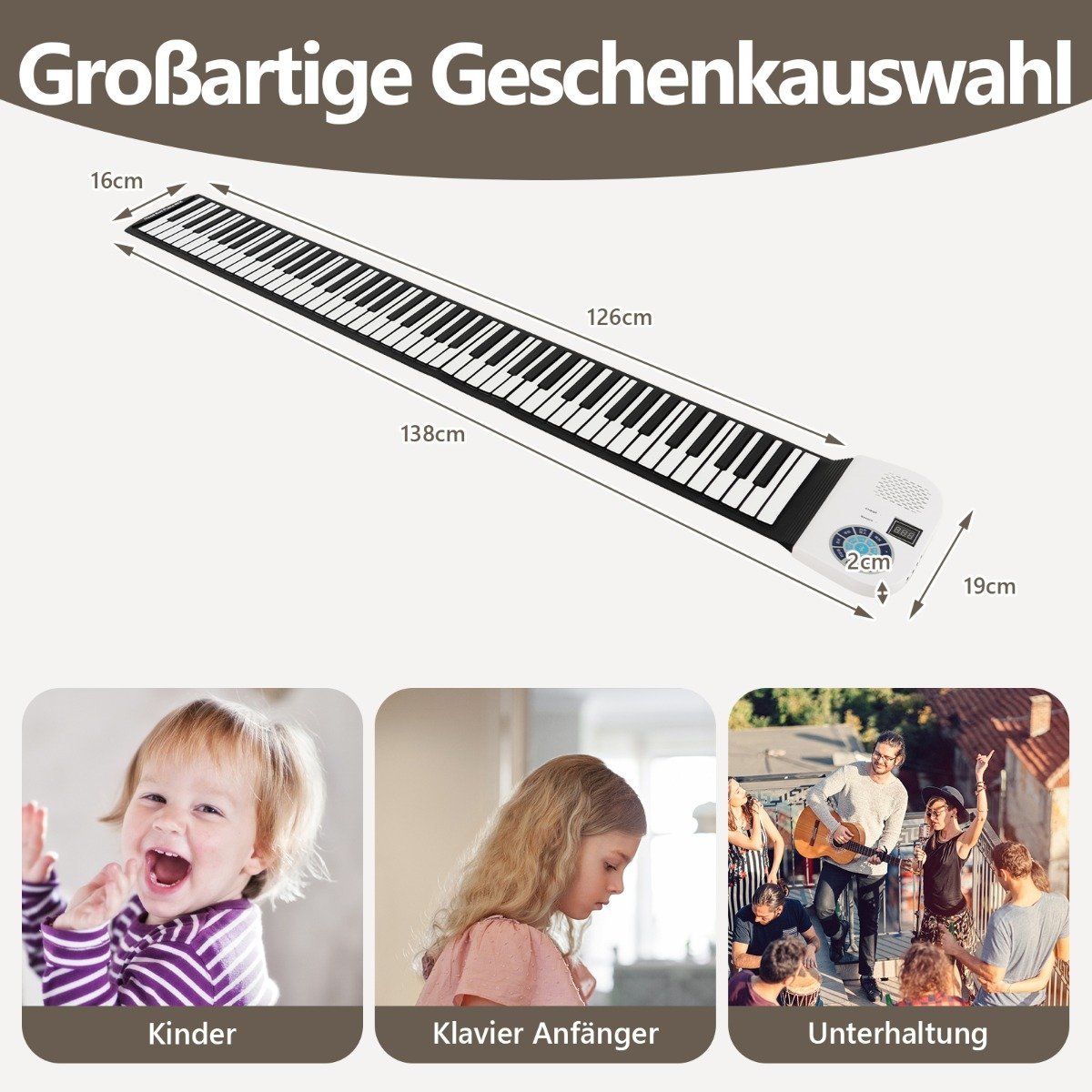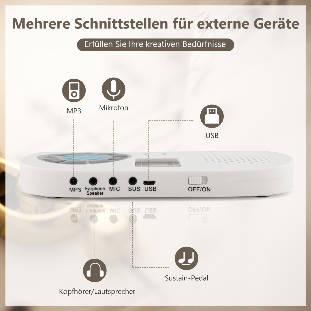 Nešiojamas 88 klavišų ritininis pianinas su 128 ritmais ir Bluetooth MIDI (Balta)