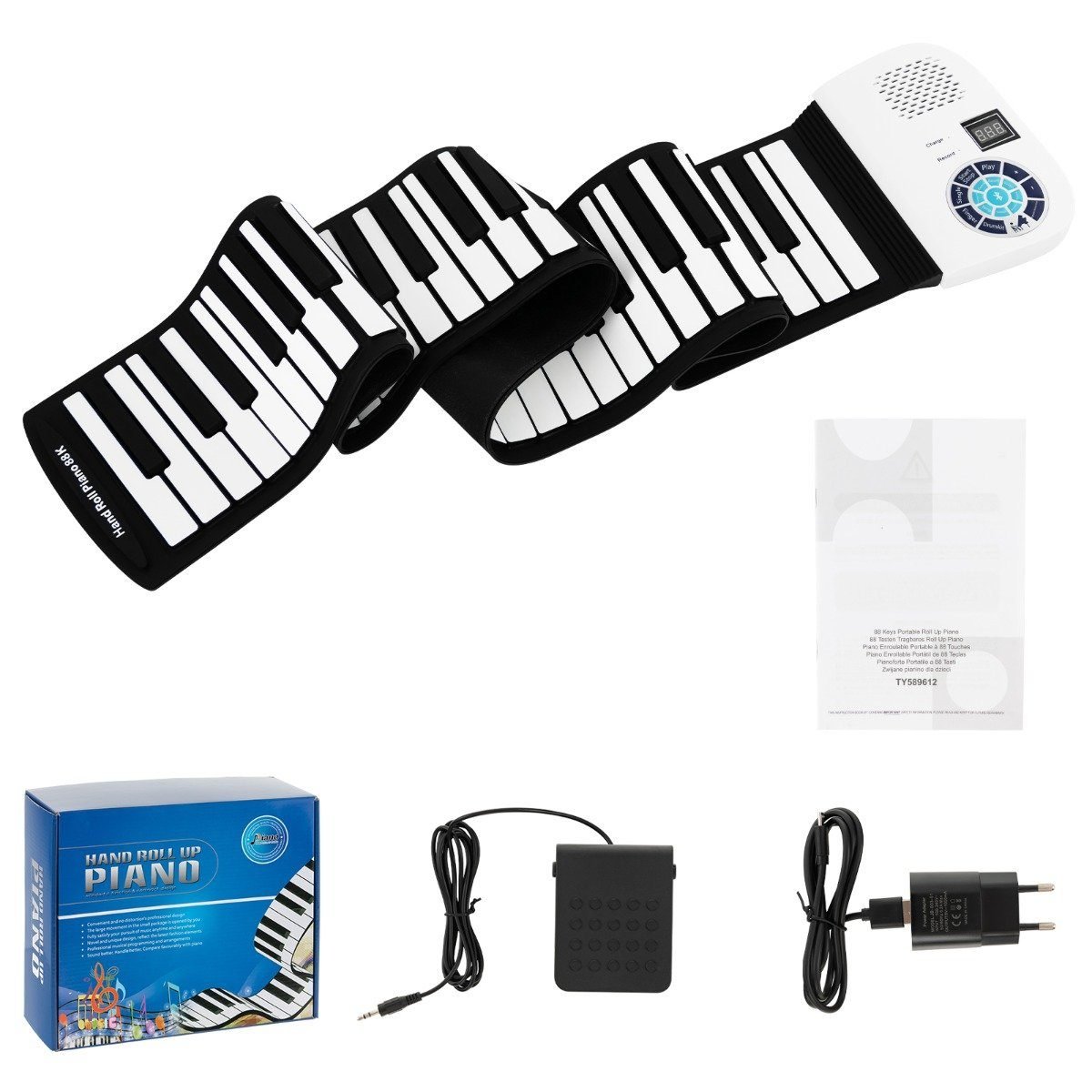 Nešiojamas 88 klavišų ritinėjamas pianinas su MIDI ir Bluetooth (Juoda)