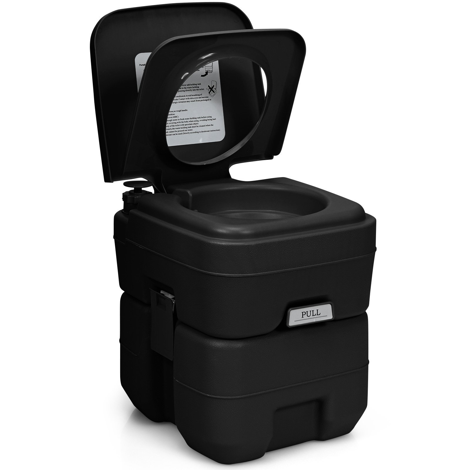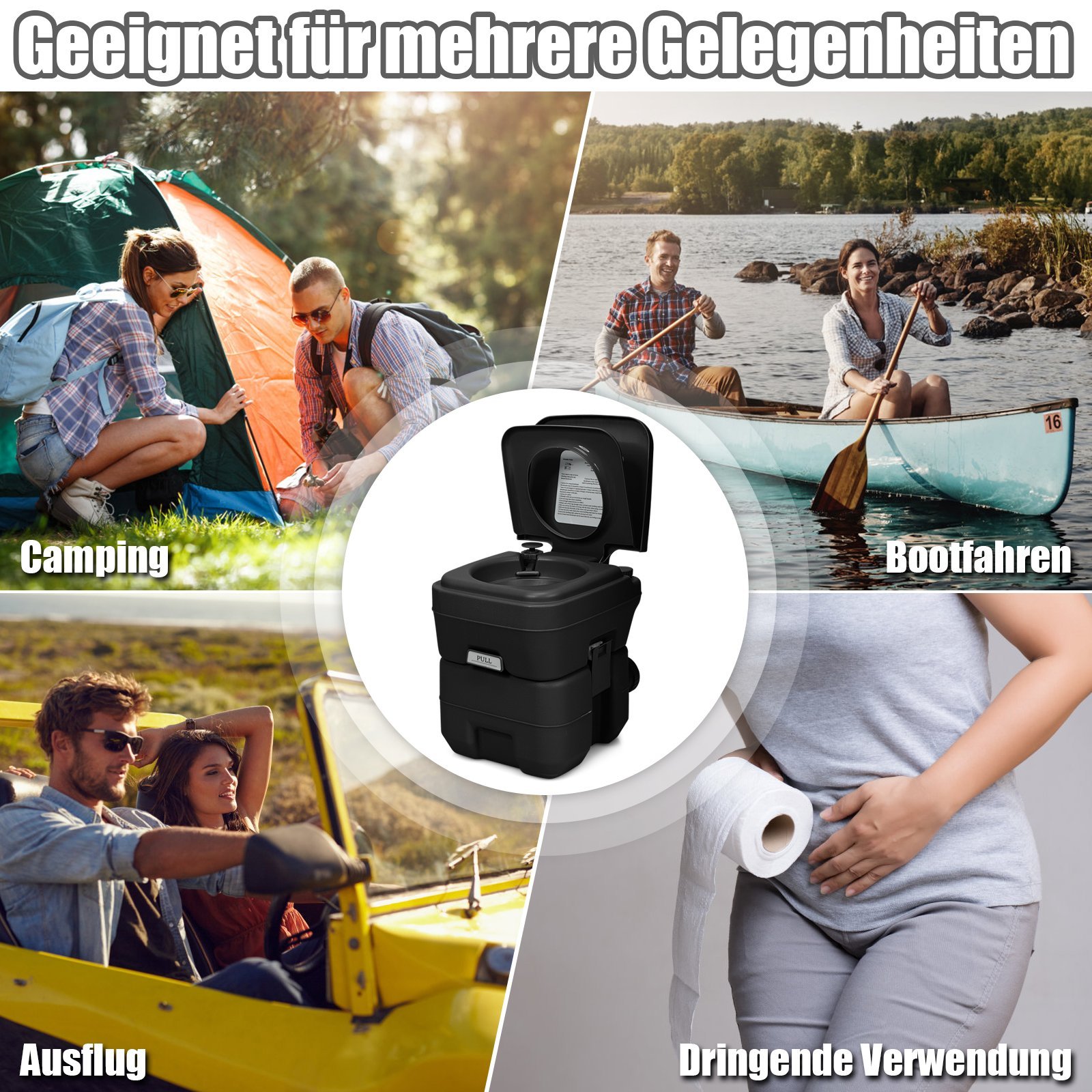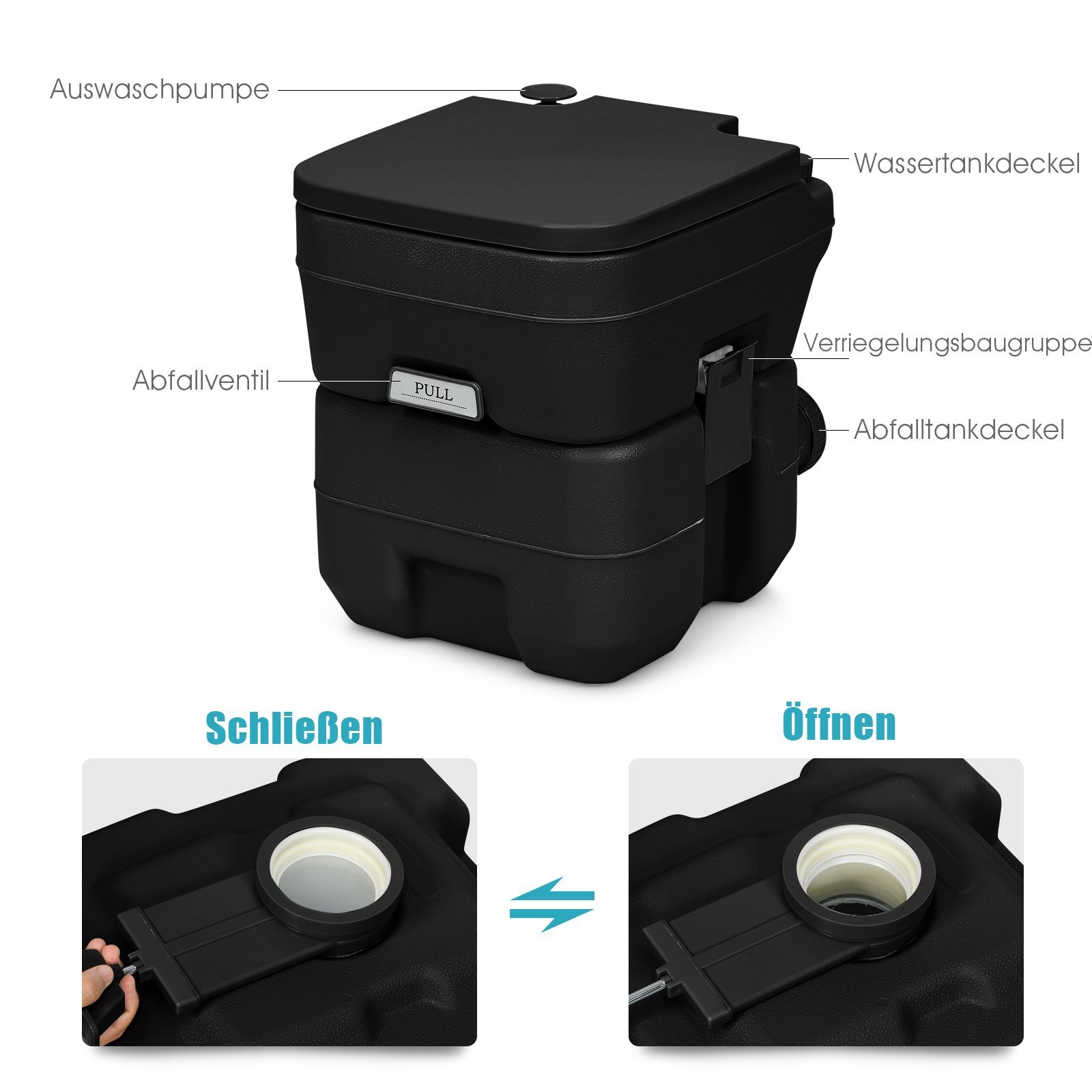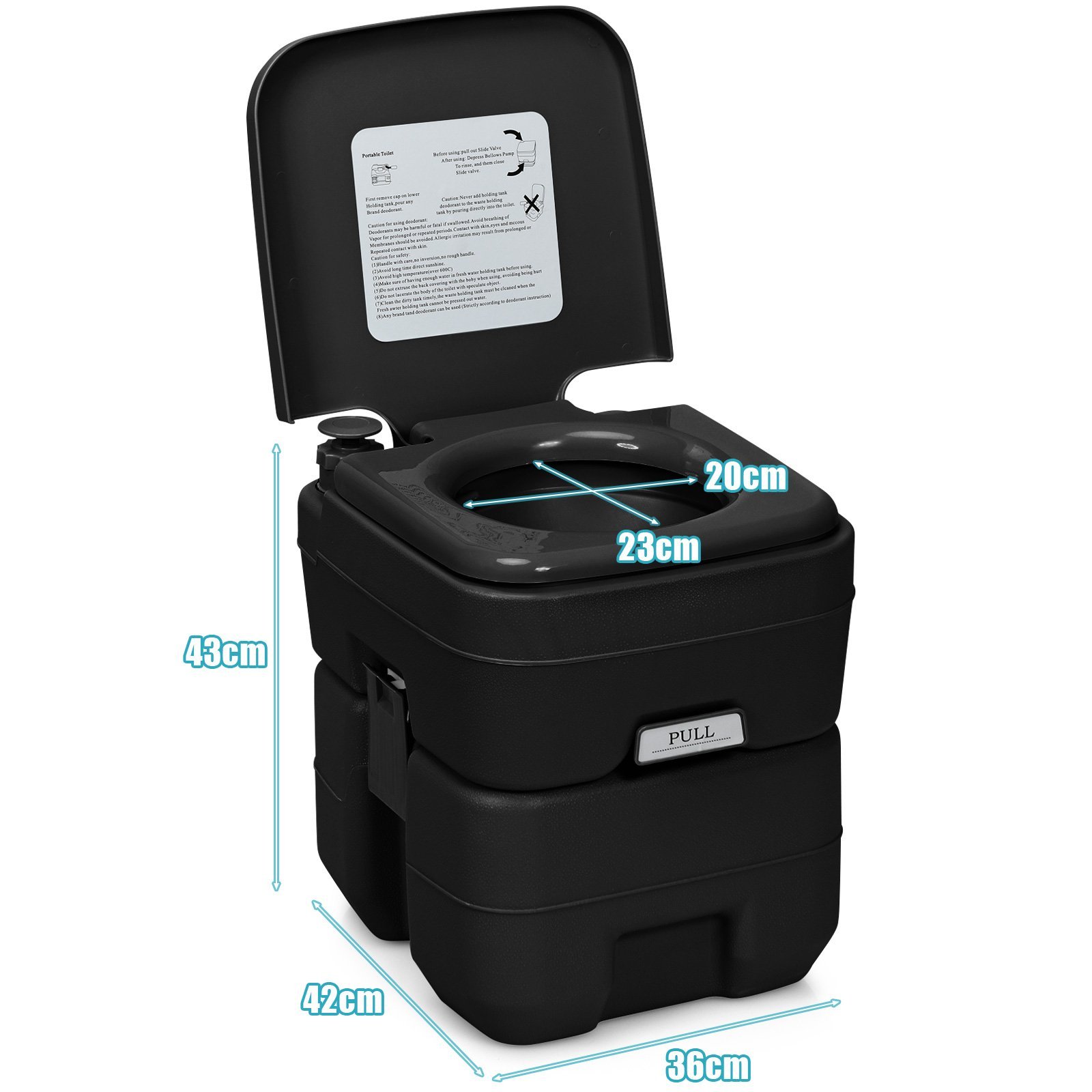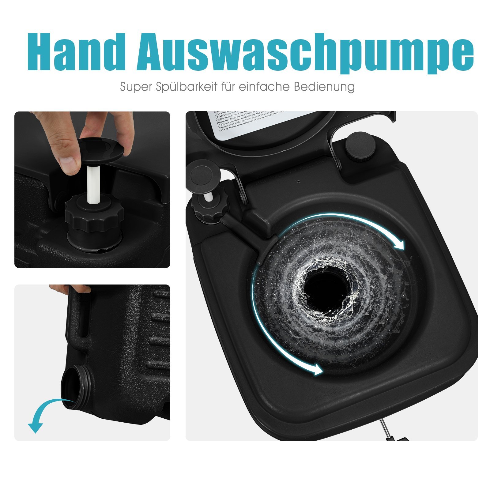 Nešiojamas kempingo tualetas su 20L nuotekų ir 12L švaraus vandens rezervuarais (Juoda)
