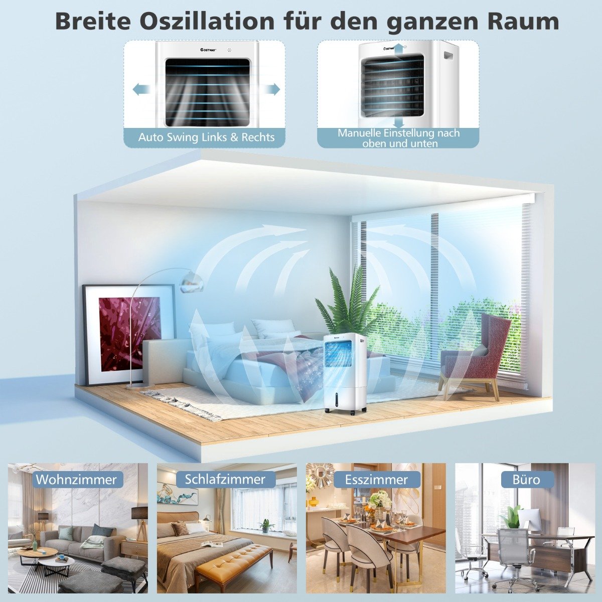 Užtikrinkite gaivų ir vėsų orą savo namuose su šiuo universaliu 3-in-1 oro aušintuvu. Jis veikia ne tik kaip efektyvus oro aušintuvas, bet ir kaip drėkintuvas bei oro valytuvas, suteikdamas Jums komfortą karštomis vasaros dienomis.