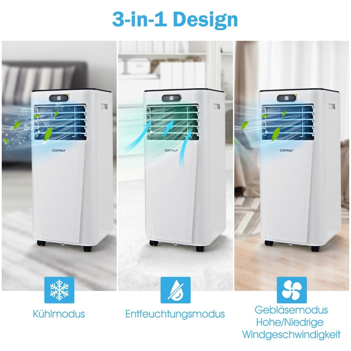 Mėgaukitės optimaliu patalpų klimatu su mūsų nešiojamu oro kondicionieriumi, kuris veikia net 4 režimais: vėsinimo, drėgmės šalinimo, ventiliatoriaus ir miego režimu. Šis kompaktiškas ir efektyvus įrenginys idealiai tinka namams, biurams ar mokykloms, užtikrinant malonią temperatūrą nuo 16℃ iki 32℃.