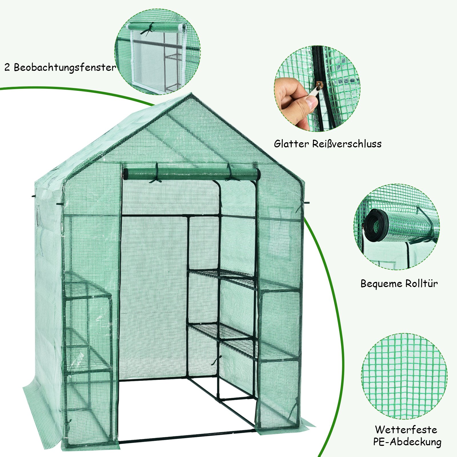 - Užtrauktuku užsegamos durys leidžia lengvai patekti į šiltnamį ir užtikrina gerą ventiliaciją.