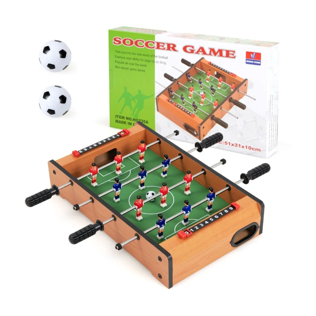 Patirkite jaudinančias futbolo varžybas bet kur ir bet kada su šiuo nešiojamu mini stalo futbolo žaidimu! Šis kompaktiškas žaidimų rinkinys leidžia pajusti tikros futbolo aikštės atmosferą, yra lengvai suprantamas ir idealiai tinka visų amžiaus grupių žaidėjams.