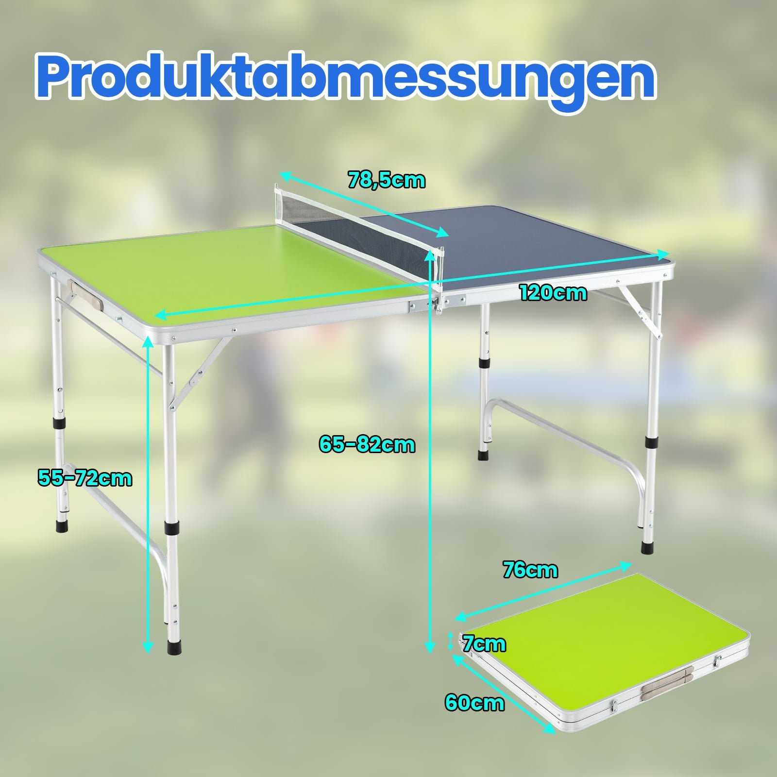 Nešiojamas sulankstomas stalo teniso stalas su reguliuojamu aukščiu (Mėlyna ir žalia)