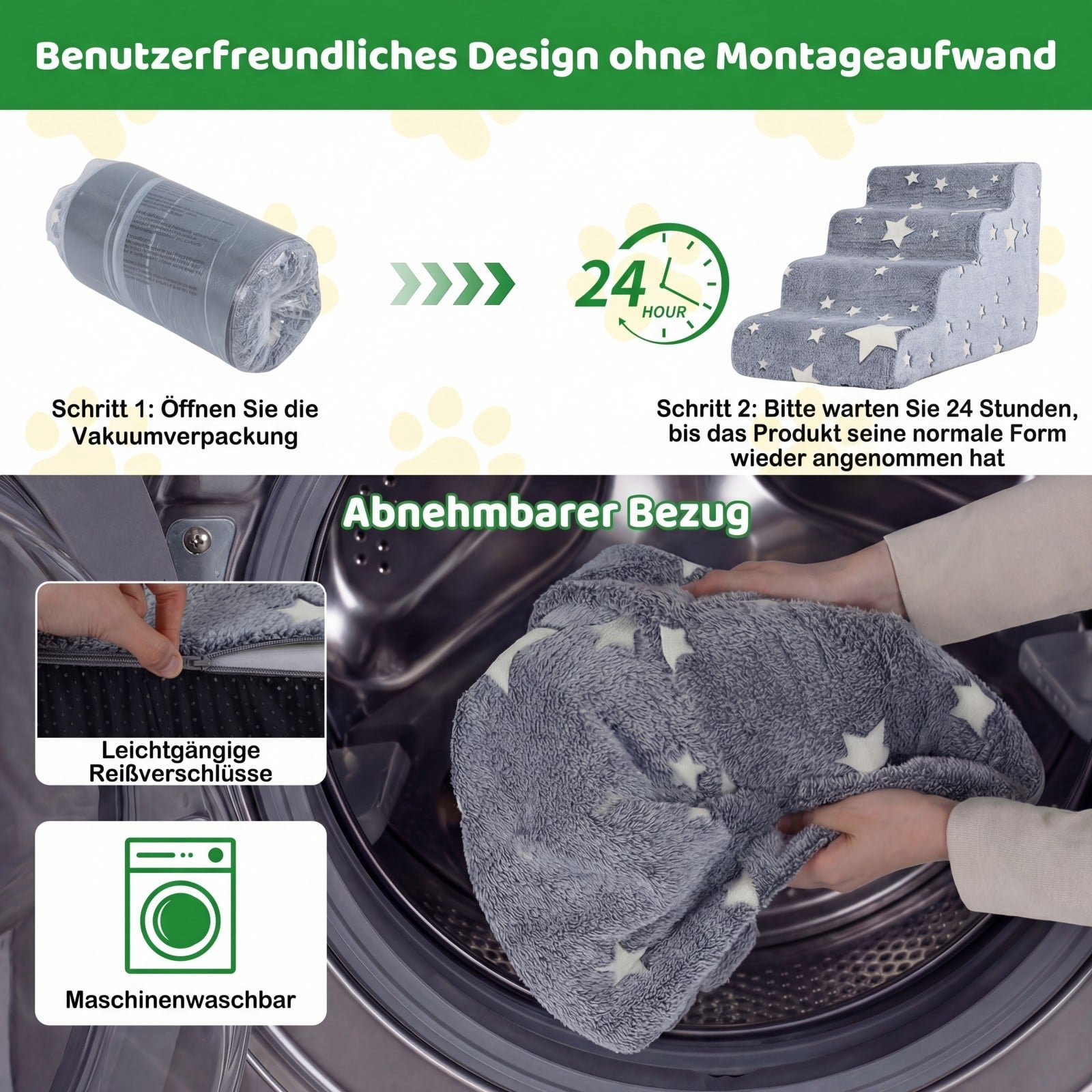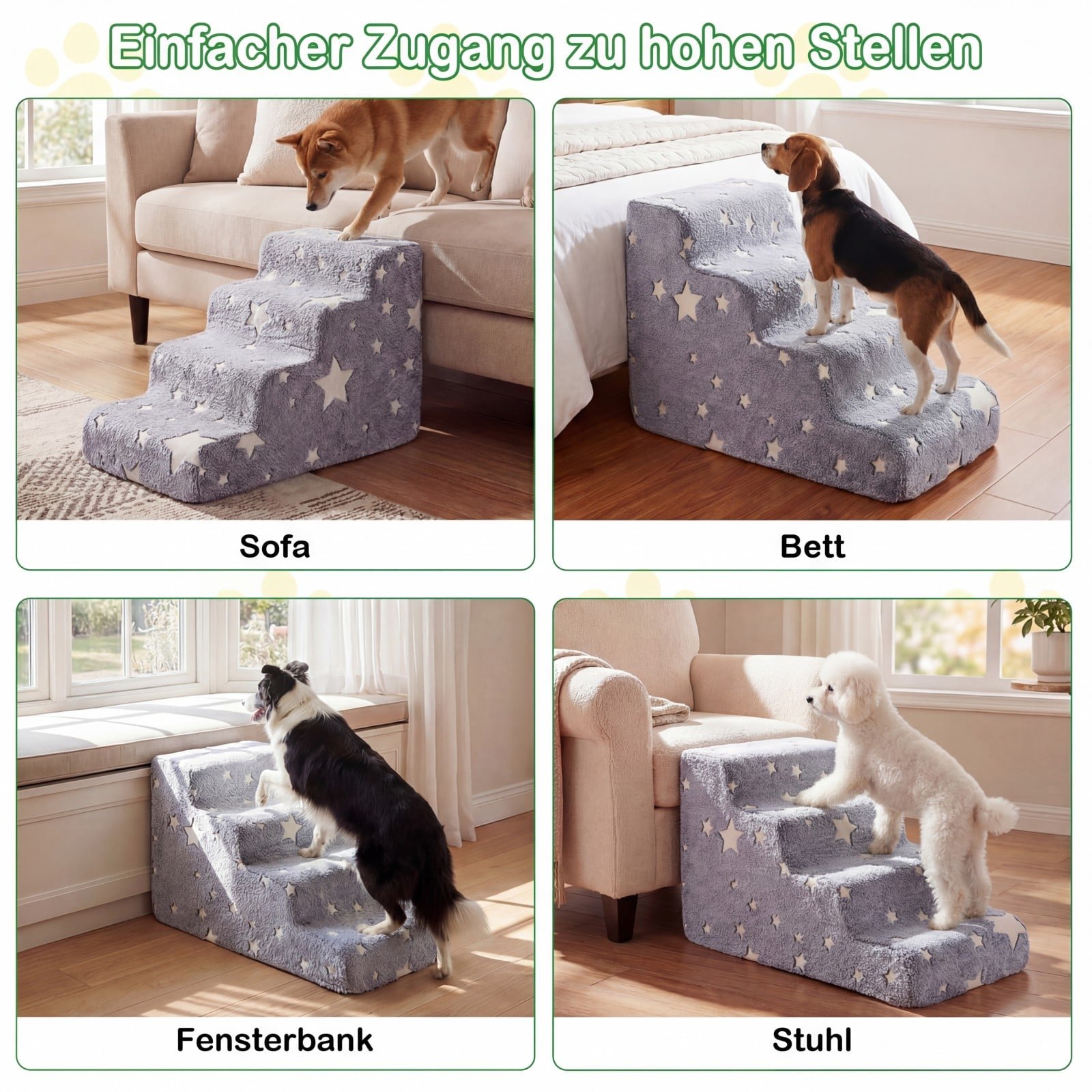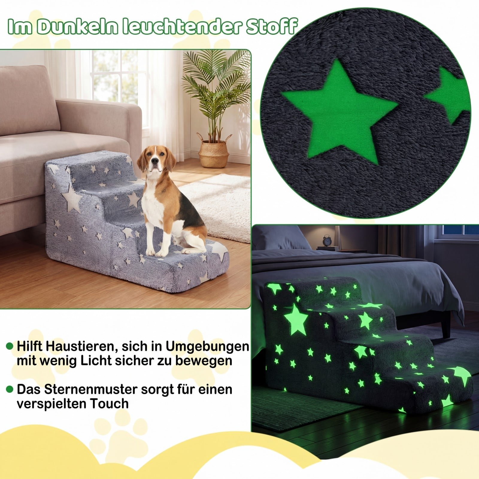 Suteikite savo keturkojui draugui lengvą ir saugų būdą pasiekti aukštesnes vietas su šiais 3 pakopų putplasčio laiptais. Pagaminti iš didelio tankio putplasčio, kiekviena pakopa užtikrina stabilų palaikymą, o švelnus nuolydis palengvina sąnarių apkrovą, užtikrindamas patogų užlipimą ir nulipimą. Idealiai tinka sužeistiems, pagyvenusiems ar trumpakojams augintiniams, šie laiptai yra ne tik funkcionalūs, bet ir stilingi, su švytinčiais žvaigždžių raštais, kurie suteikia jaukumo ir padeda orientuotis prietemoje.