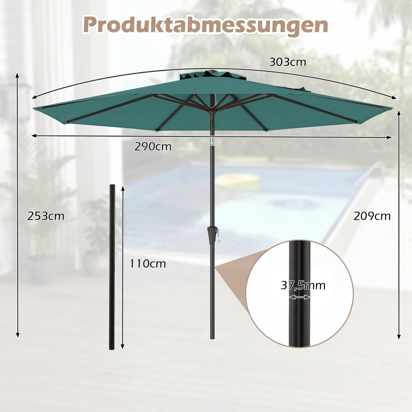 • Skėčio stulpo skersmuo (Ø): 37,5 mm