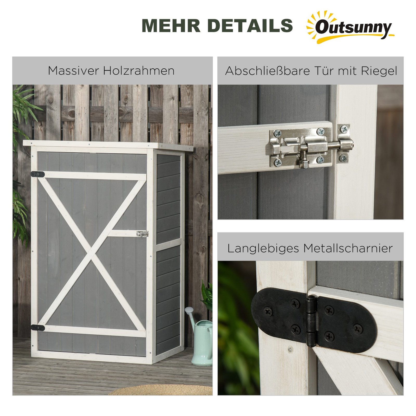 ✔ Kompaktiškas įrankių spintelės dizainas puikiai tinka mažesnėms lauko erdvėms
