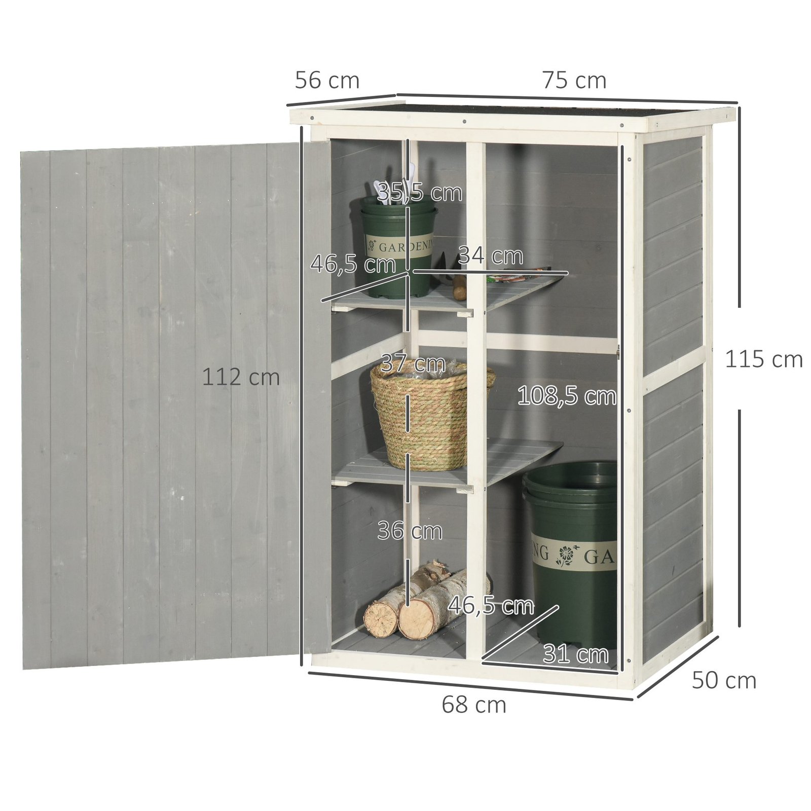 ✔ Dvi lentynos ir atviras įrankių namelio skyrius suteikia daug vietos sodo įrankiams