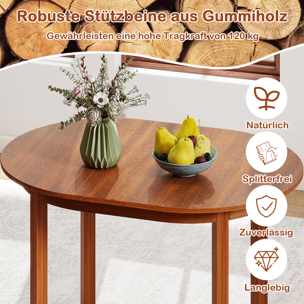 - Tvirta konstrukcija iš kaučiukmedžio medienos užtikrina stabilumą ir ilgaamžiškumą.