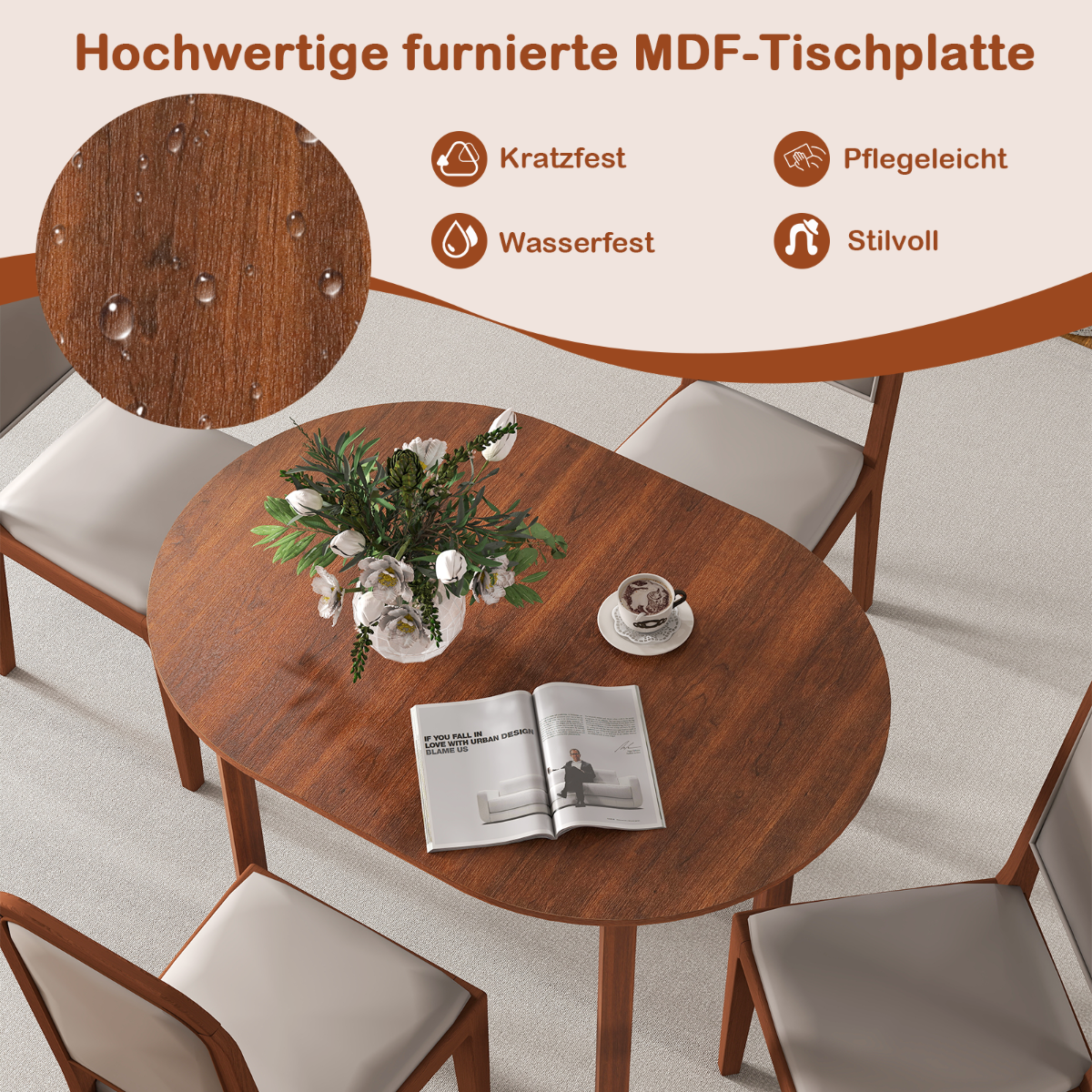 - Kompaktiškas dydis idealiai tinka 2-4 asmenims ir taupo erdvę.