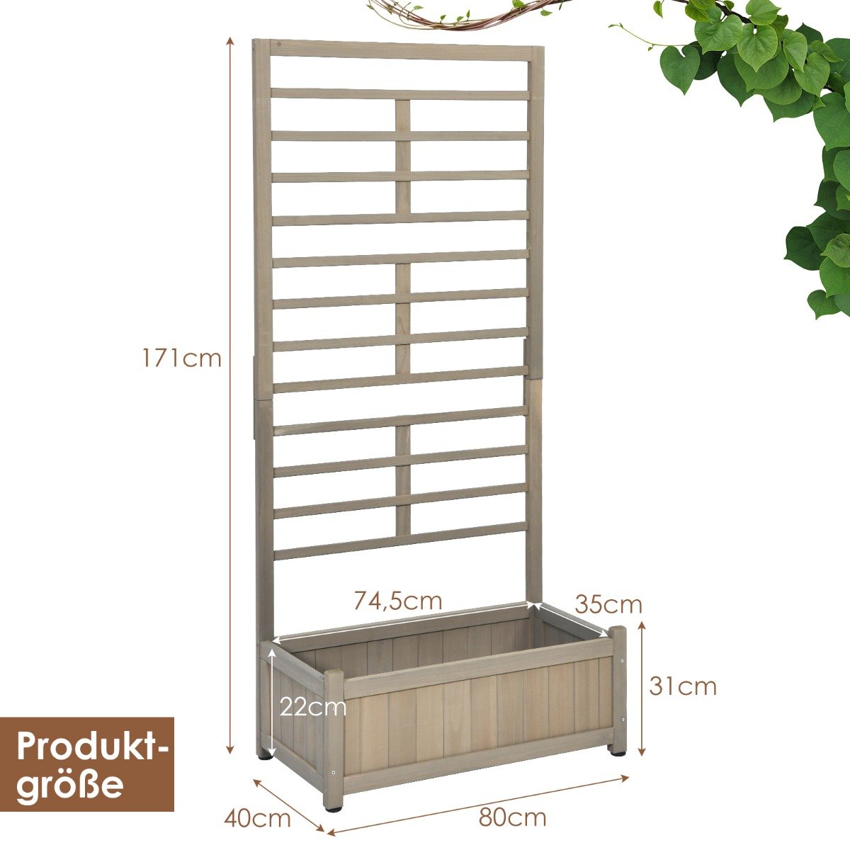 Atnaujinkite savo lauko erdvę su mūsų medine lysve! Pagaminta iš kokybiškos eglės medienos, ši lysvė yra tvirta ir atspari deformacijai. Didelė talpa augalams puikiai tinka įvairioms gėlėms auginti, o atrama leis vijokliniams augalams gražiai vystytis.
