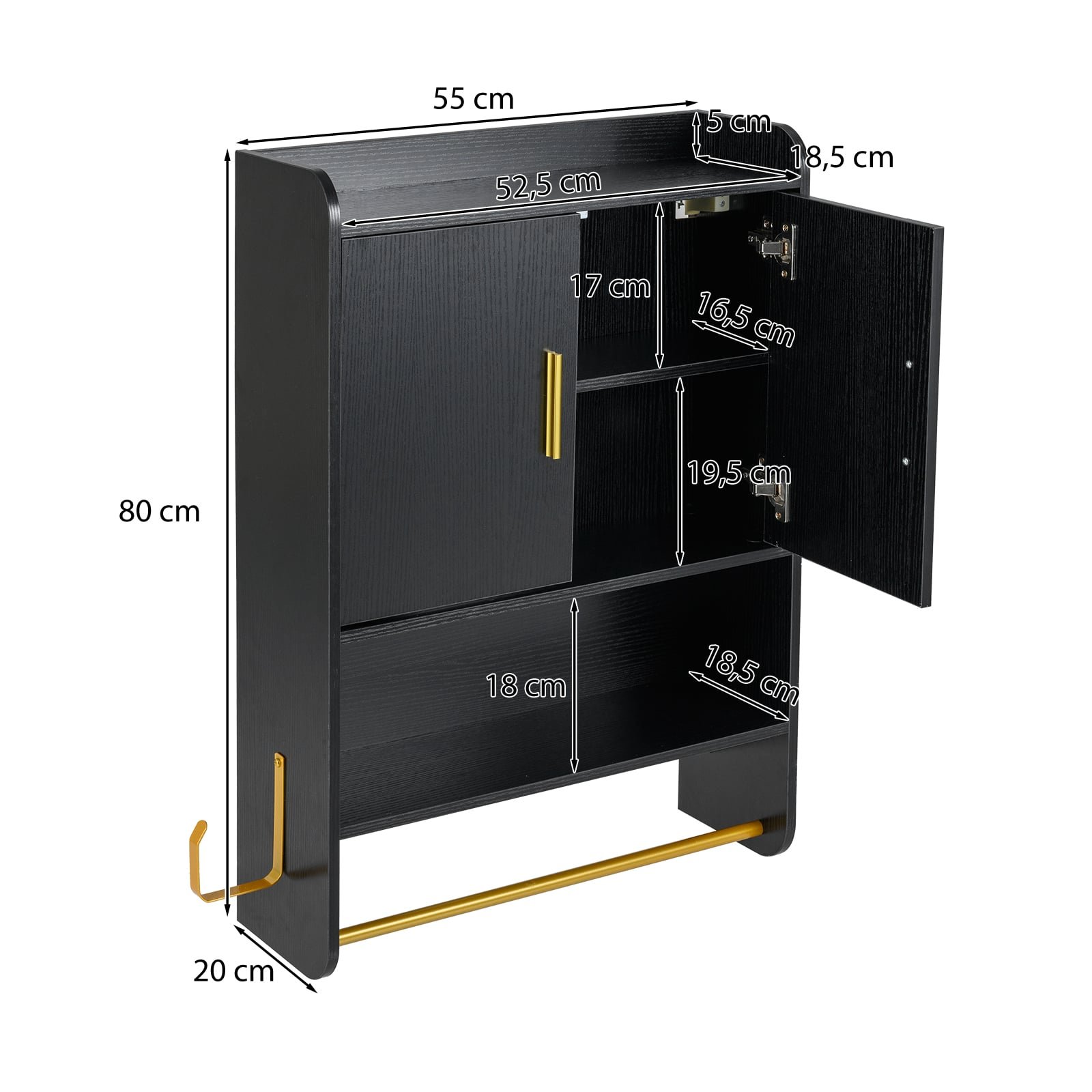 - Atviros lentynos matmenys: 52,5 x 18,5 x 18 cm (I x P x A)