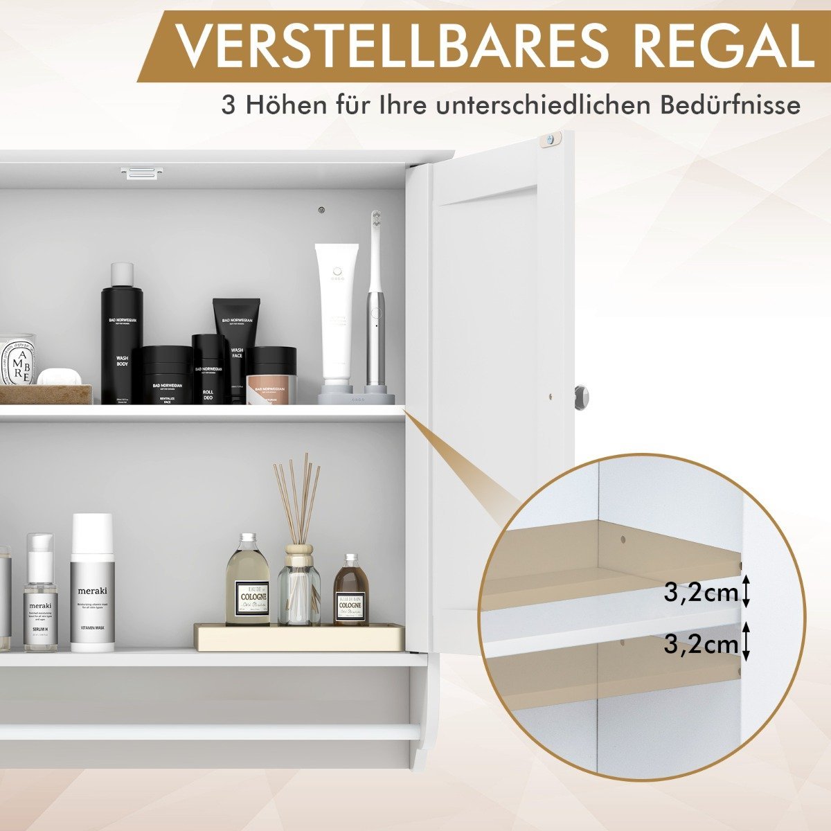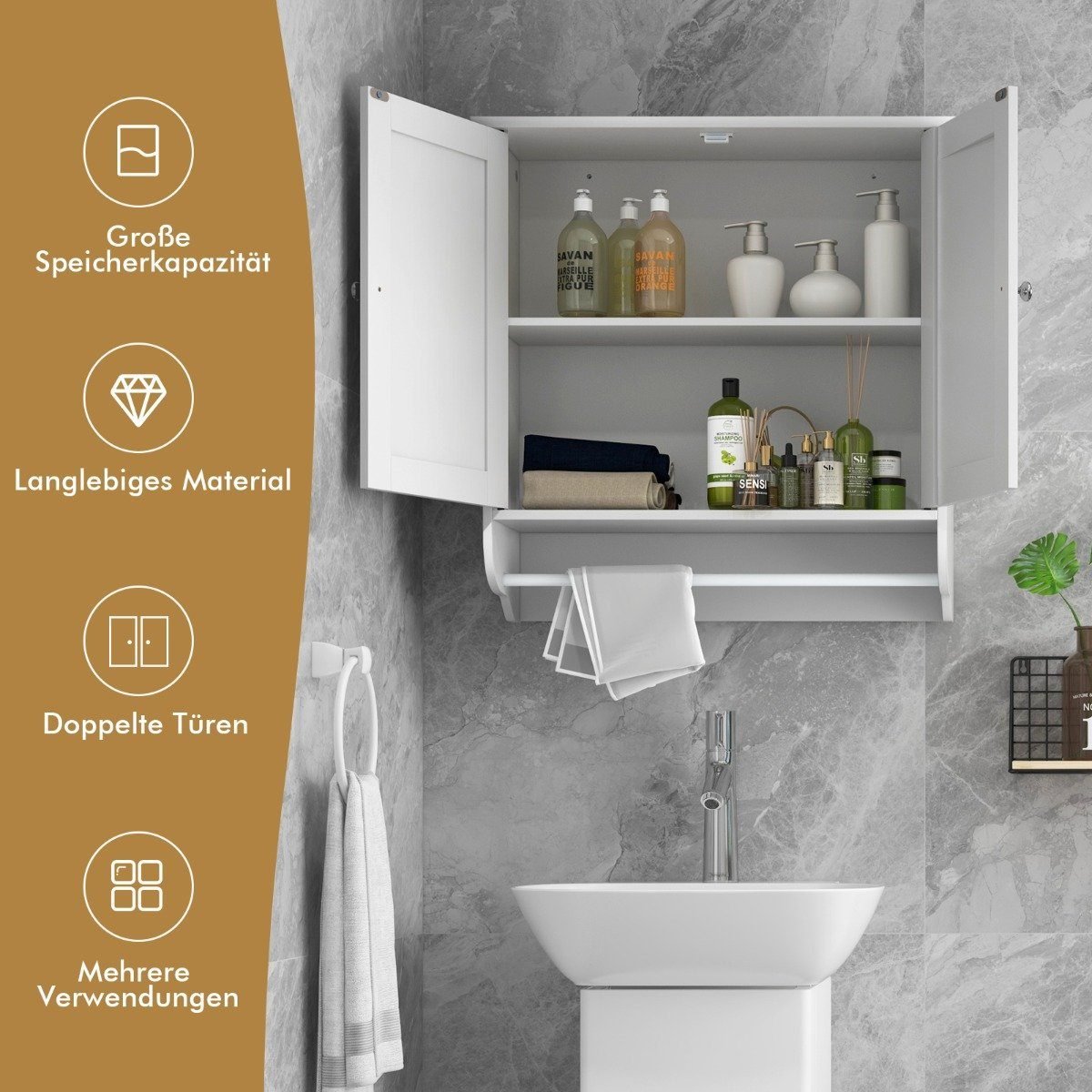 - Didelė talpa: 2 uždaros lentynos ir patogus rankšluosčių laikiklis.
