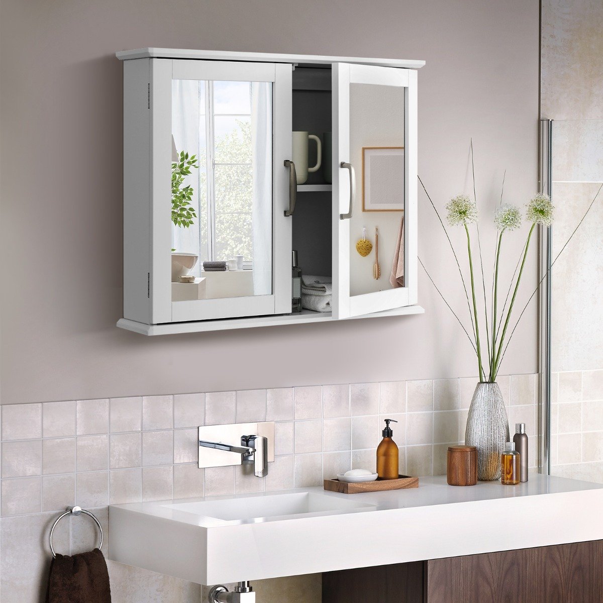 Pakabinama vonios spintelė su veidrodinėmis durimis ir lentynomis (Balta)