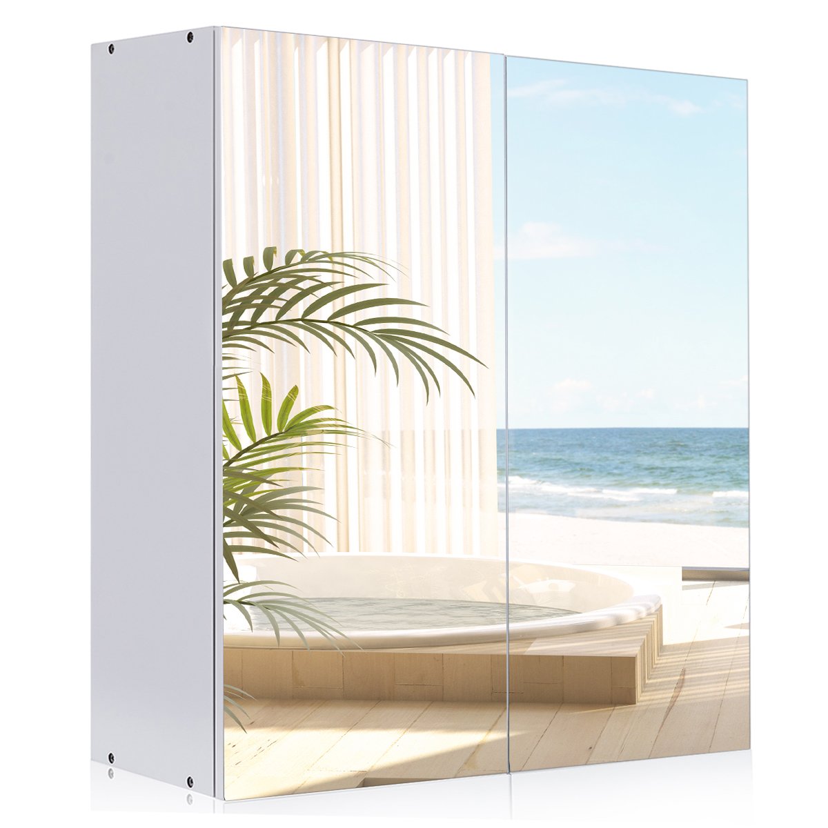 Pakabinama vonios spintelė su veidrodžiu (Balta)
