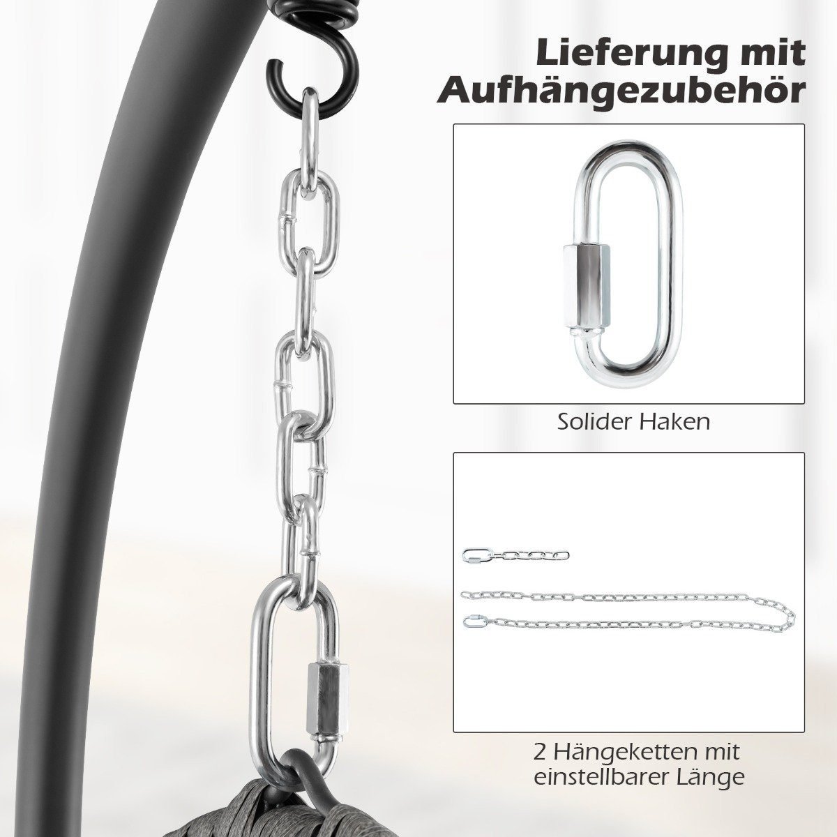 - 1 x Kiaušinio formos pakabinamas krėslas