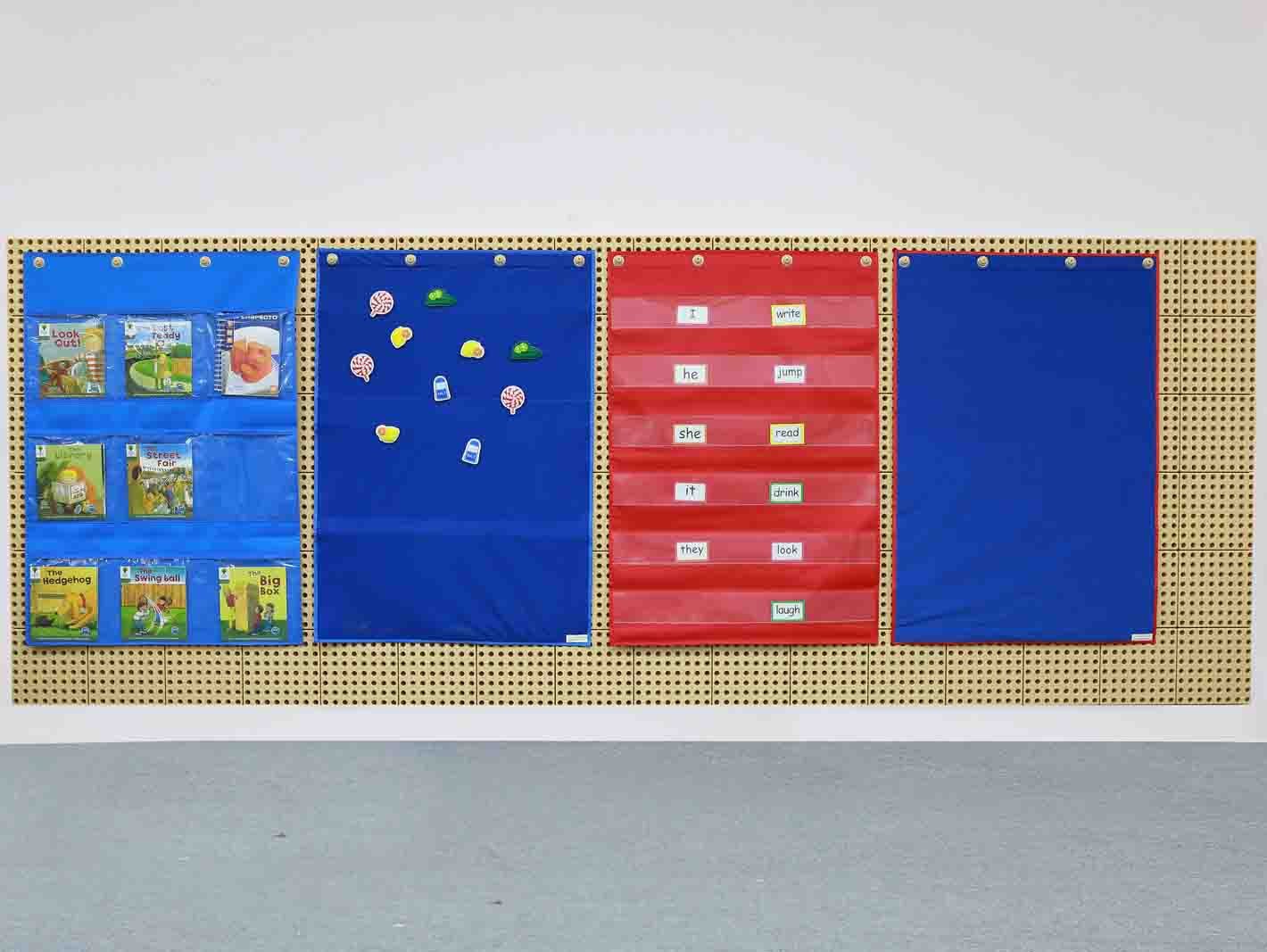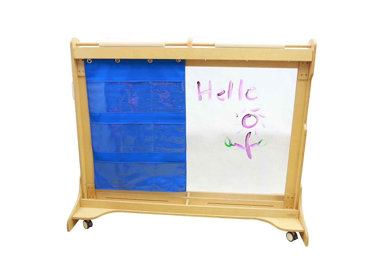 - Trys kišenėlių eilės, kuriose galima patogiai eksponuoti mokomąsias priemones, nuotraukas ar knygas.