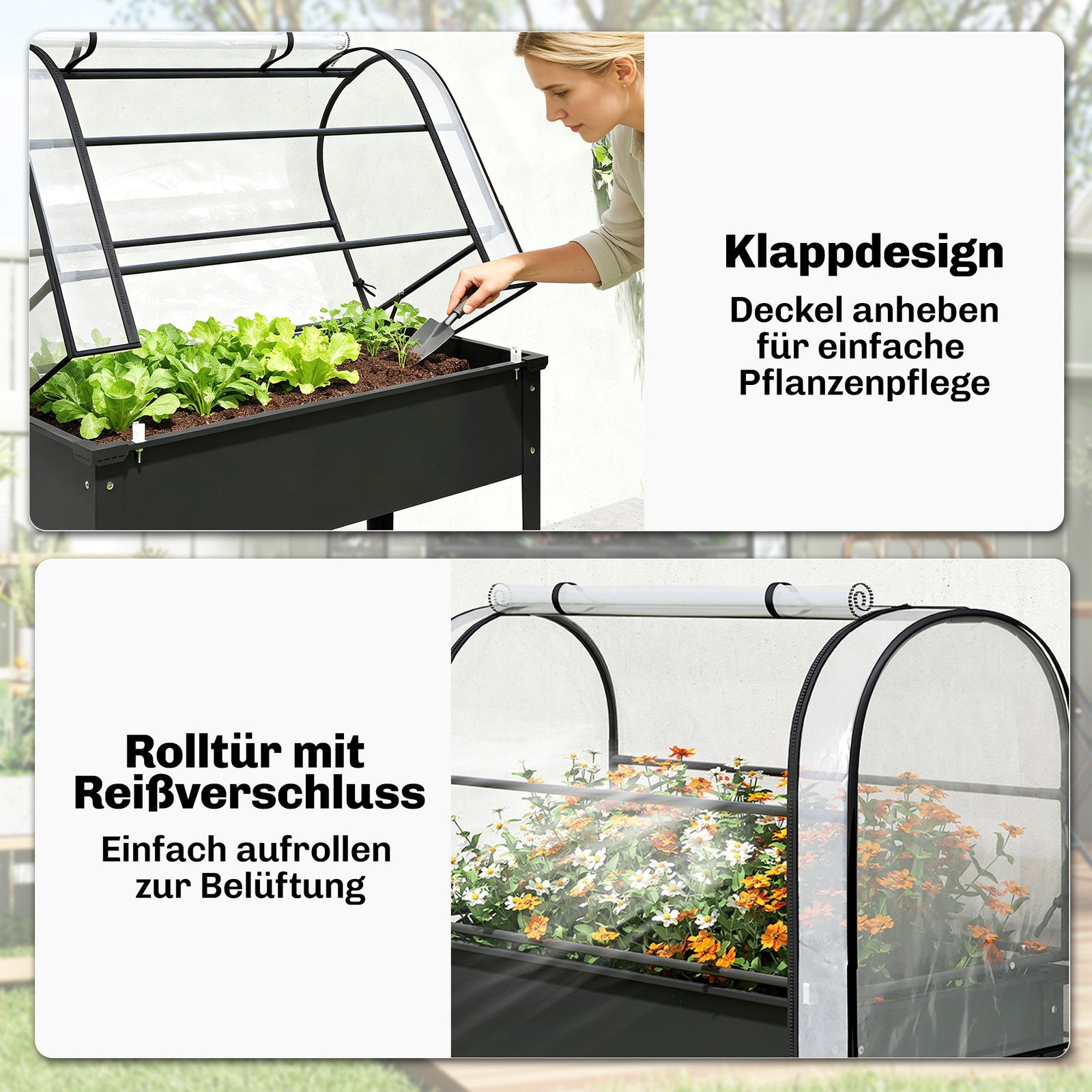 Aukšta lysvė su permatomu dangčiu suteikia šiltą, apsaugotą erdvę sveikam augalų auginimui ir leidžia lengvai stebėti augimą. Atverčiamas augalų lysvės dangtis palengvina laistymą ir priežiūrą. Jis yra nuimamas, kad būtų galima lanksčiai naudoti, o prailginti kraštai leidžia pridėti akmenų ar žemių didesniam stabilumui lauke.