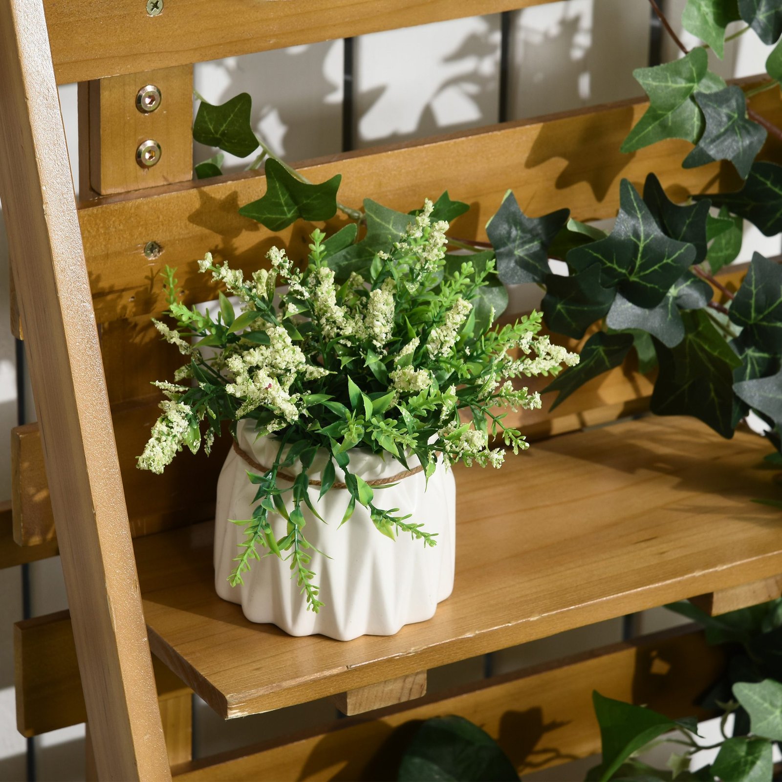 Pakelta lysvė su integruota vijoklinių augalų atrama ir 3 lentynėlėmis