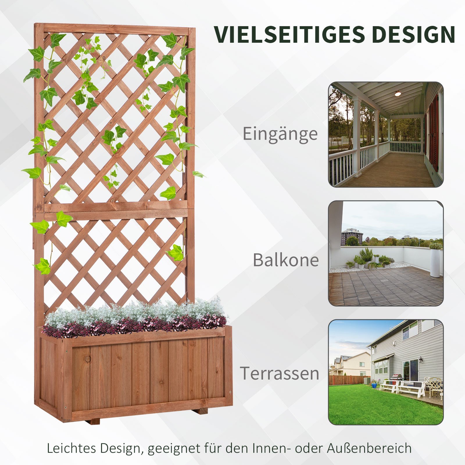 Stilingai eksponuokite savo mėgstamus augalus ir suteikite savo lauko aplinkai išskirtinumo su šiuo kaimiško stiliaus gėlių vazonu! Tvirtas vijoklinis stulpelis suteikia idealią galimybę auginti dekoratyvinius vijoklinius augalus ir skoningai atgaivinti jūsų sodą. Iš atmosferos poveikiui atsparios medienos pagamintas rėmas apsaugo gėlių vazoną nuo bet kokio oro ir leidžia jums nuolat naudoti pakeltą gėlyną lauke.