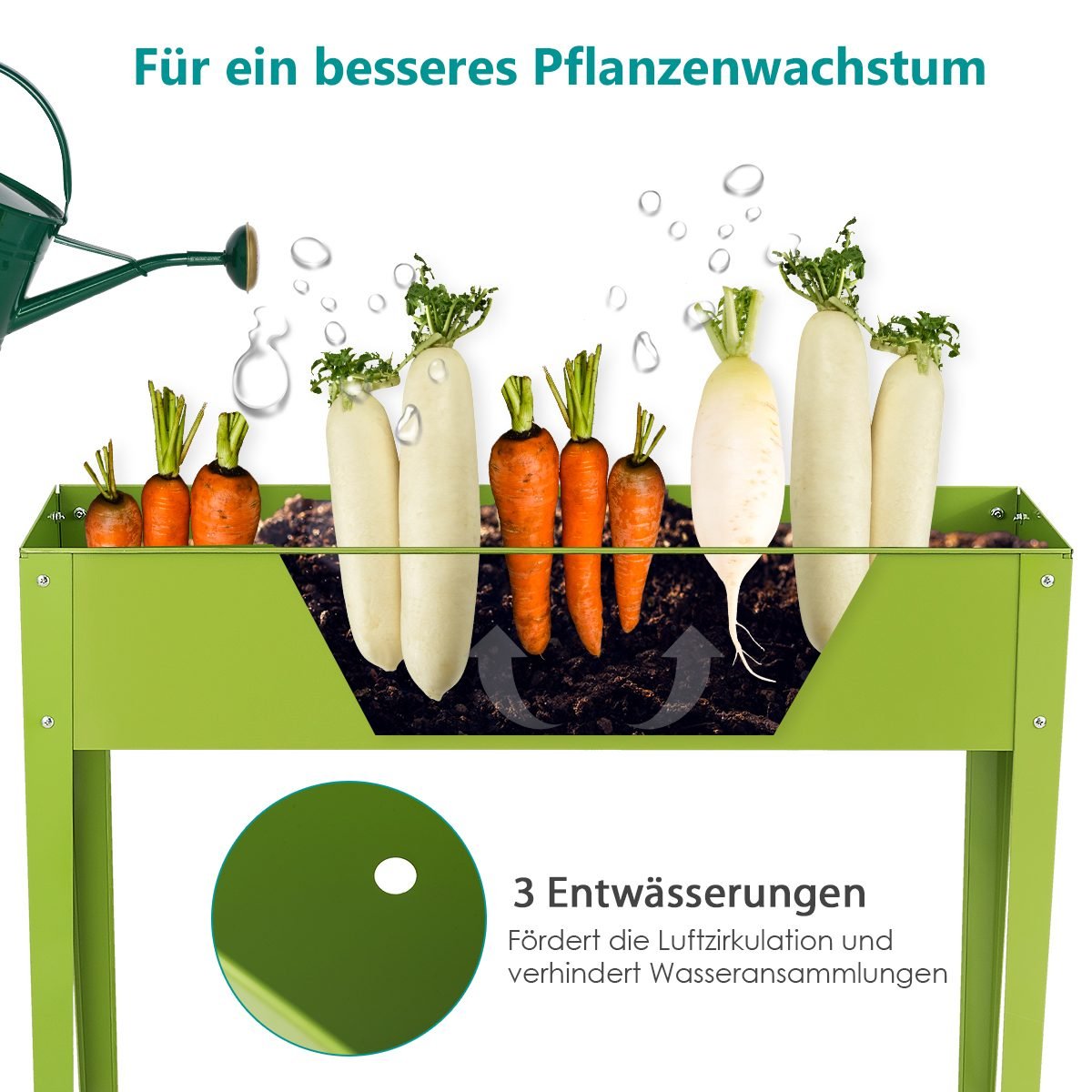 Atraskite patogumą ir funkcionalumą su mūsų pakeltu metaliniu gėlynu, sukurtu palengvinti jūsų sodininkavimo patirtį. Dėl paaukštintos konstrukcijos ir apgalvotų detalių šis gėlynas leis jums mėgautis sodininkavimu be nereikalingos nugaros ir juosmens apkrovos.