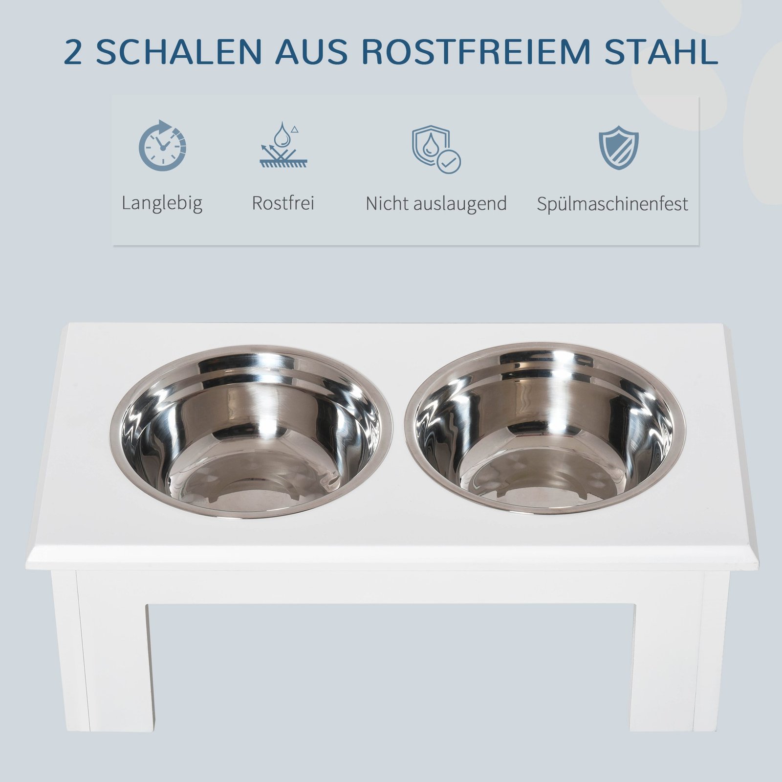 ✔ Paaukštinti dubenėliai su neslystančiomis kojelėmis užtikrina stabilumą, neleidžia jiems slysti ir apsaugo jūsų grindis