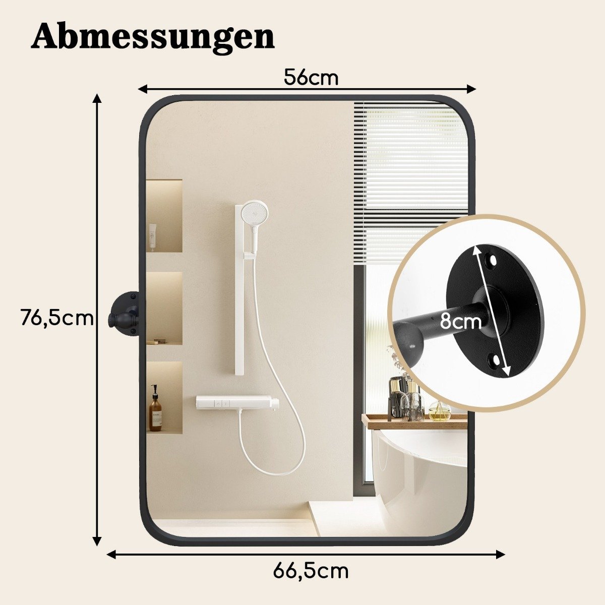 • Veidrodžio matmenys: 76,5 cm x 56 cm