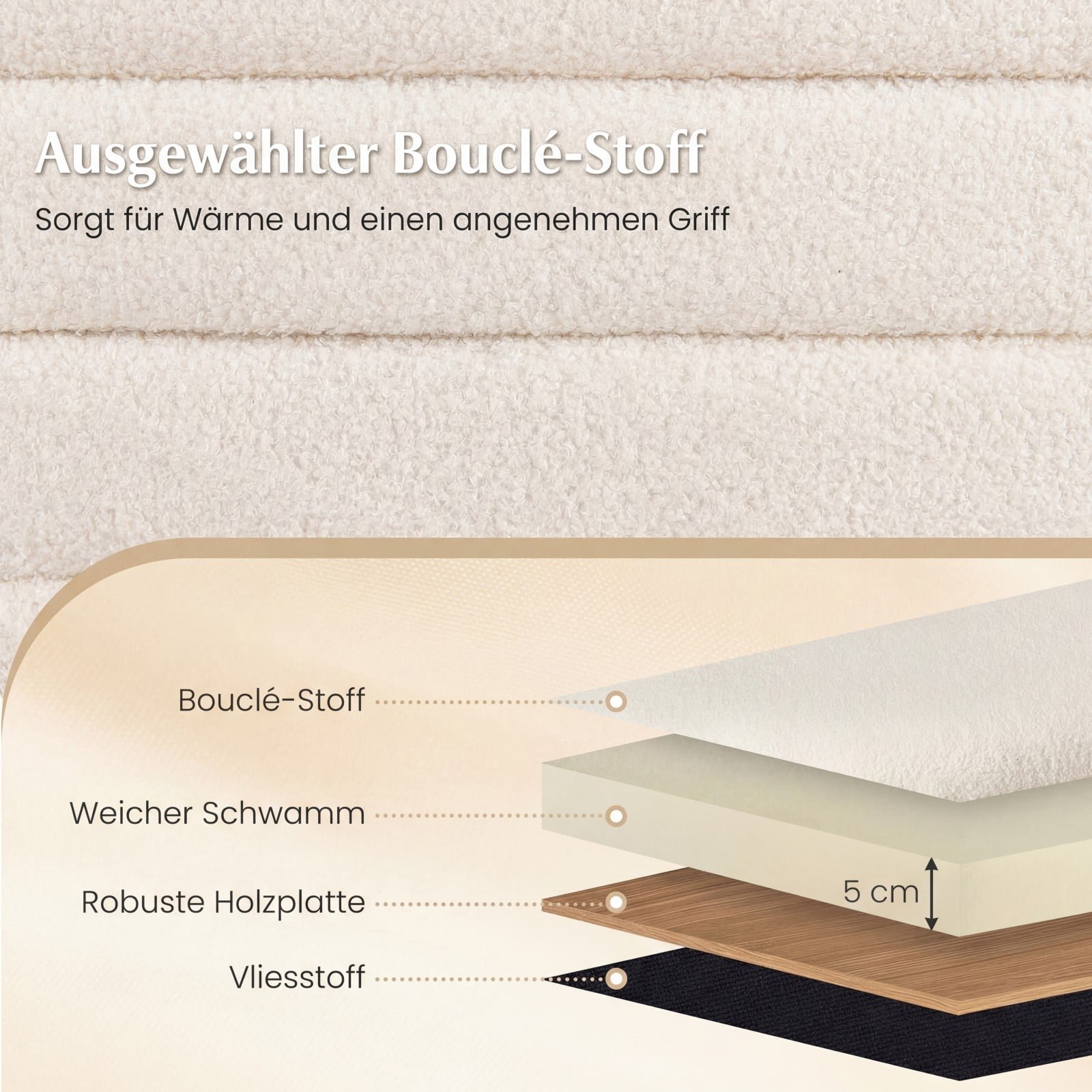 - Minkštas bouclé audinio apmušalas ir 5 cm storio putų užpildas užtikrina išskirtinį sėdėjimo komfortą.