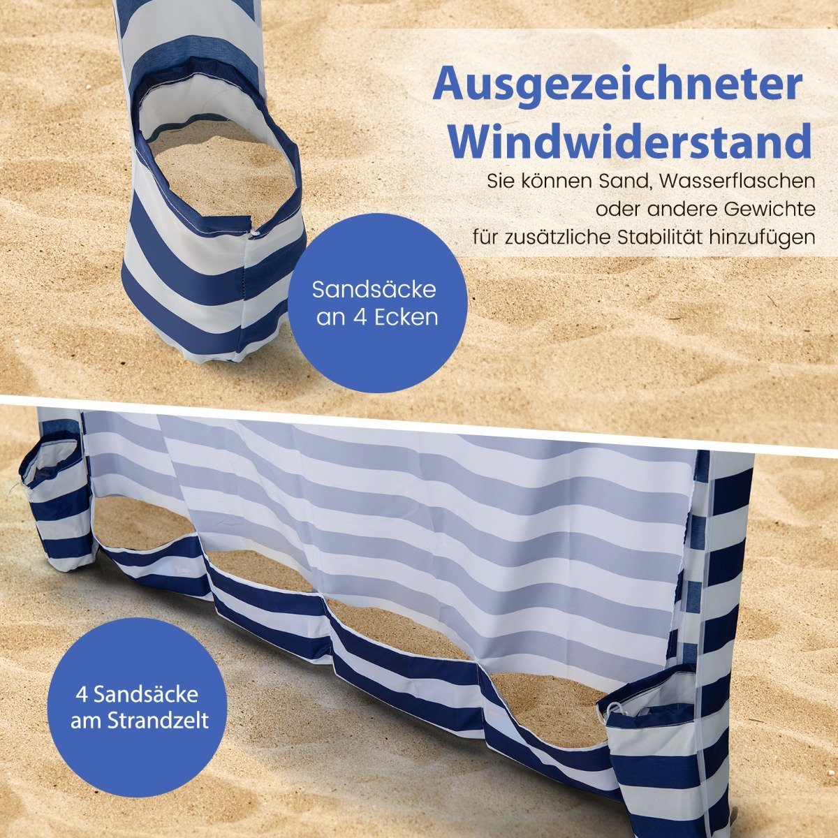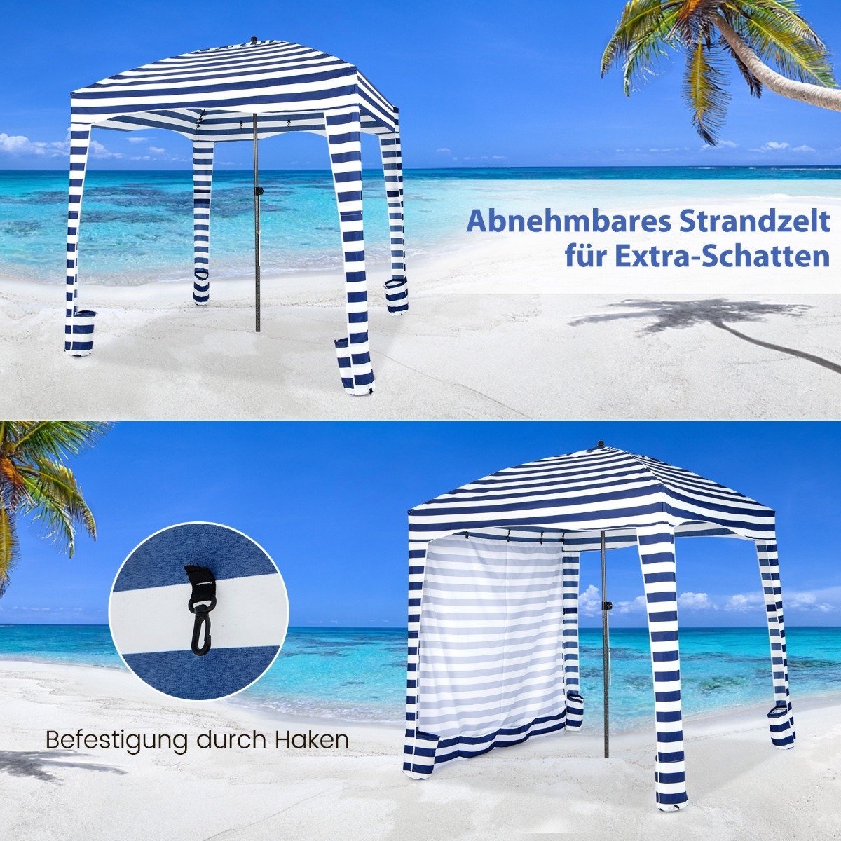 Paplūdimio palapinė su nuimama šonine sienele ir 8 smėlio maišais 183 x 183 cm (Mėlyna)