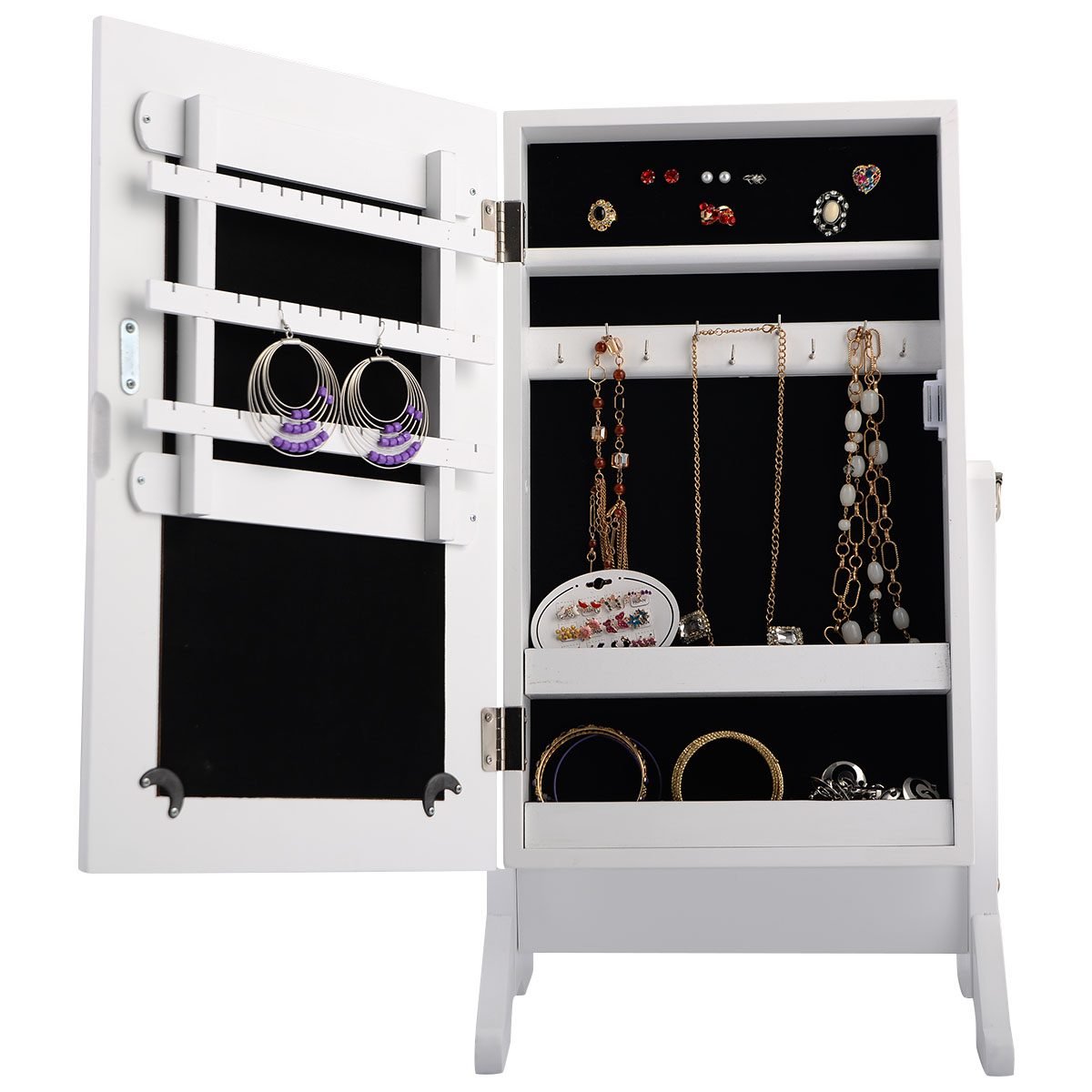 Šioje praktiškoje papuošalų spintelėje Jūsų papuošalai bus saugiai ir tvarkingai saugomi. Su veidrodžiu, ši spintelė puikiai tinka įvairiems papuošalams: žiedams, karoliams, laikrodžiams ir apyrankėms. Jos elegantiškas dizainas ir aukštos kokybės medžiagos užtikrina ilgaamžiškumą bei puikiai dera prie bet kokio interjero.