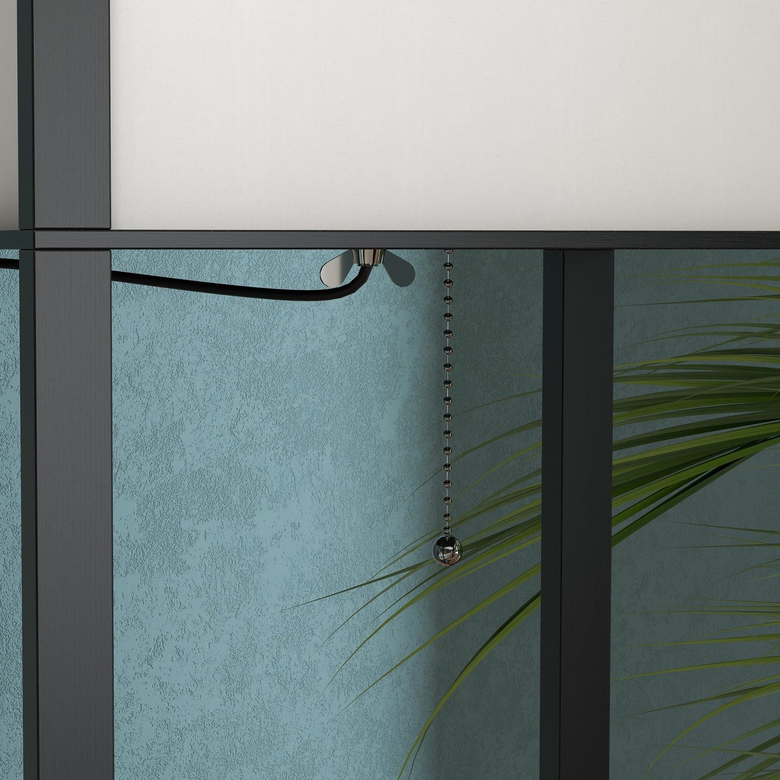 Elegantiška ir funkcionali, mūsų pastatoma lempa sujungia stilingą saugojimą su švelniu apšvietimu. Ant trijų atvirų pastatomos lempos lentynų eksponuokite knygas, dekoracijas ar augalus ir sukurkite jaukią atmosferą su integruota pastatoma lempa.